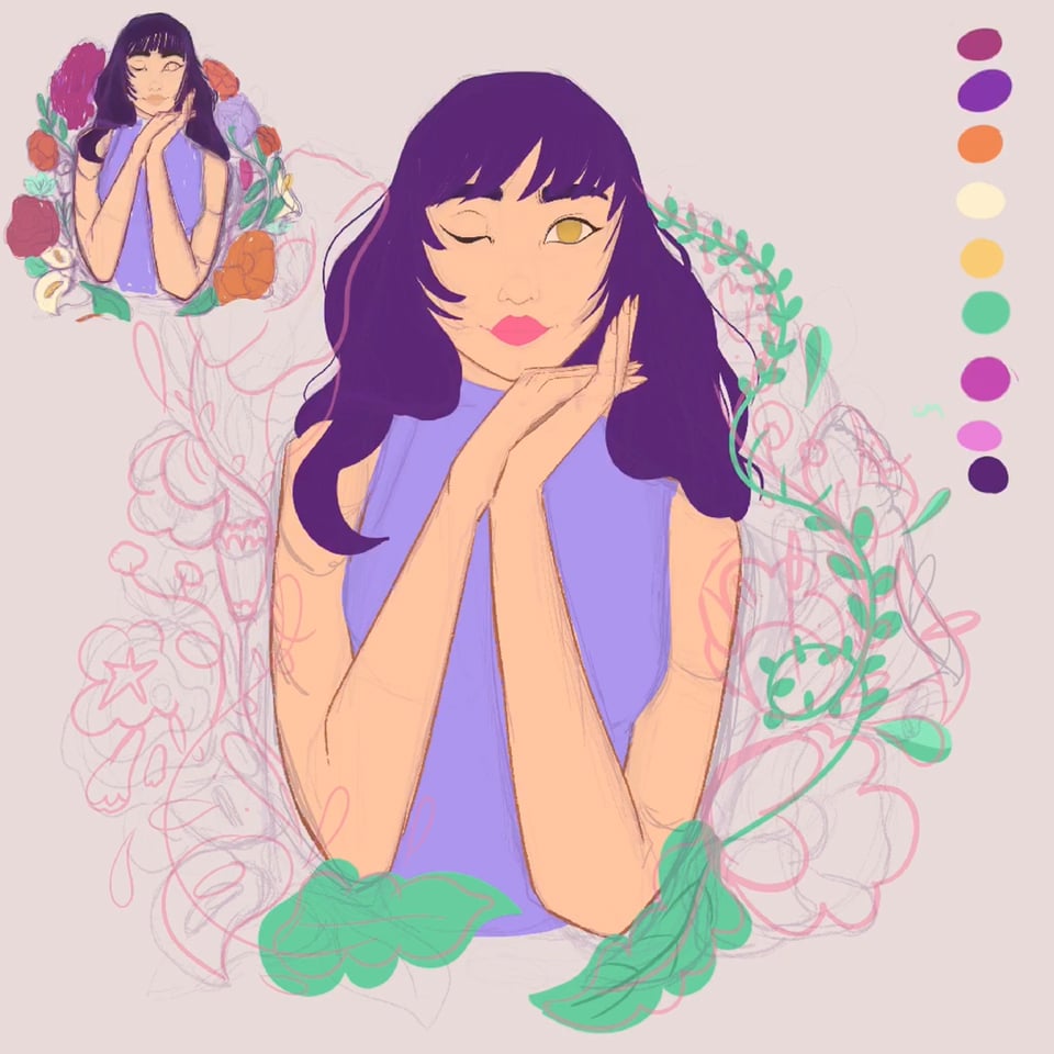 Hai! Terima kasih banyak sudah berbagi proyek akhirmu! Aku suka posenya dan bagaimana bunga-bunga di sekitarnya terbentuk. Kelihatannya sangat estetis! 😍