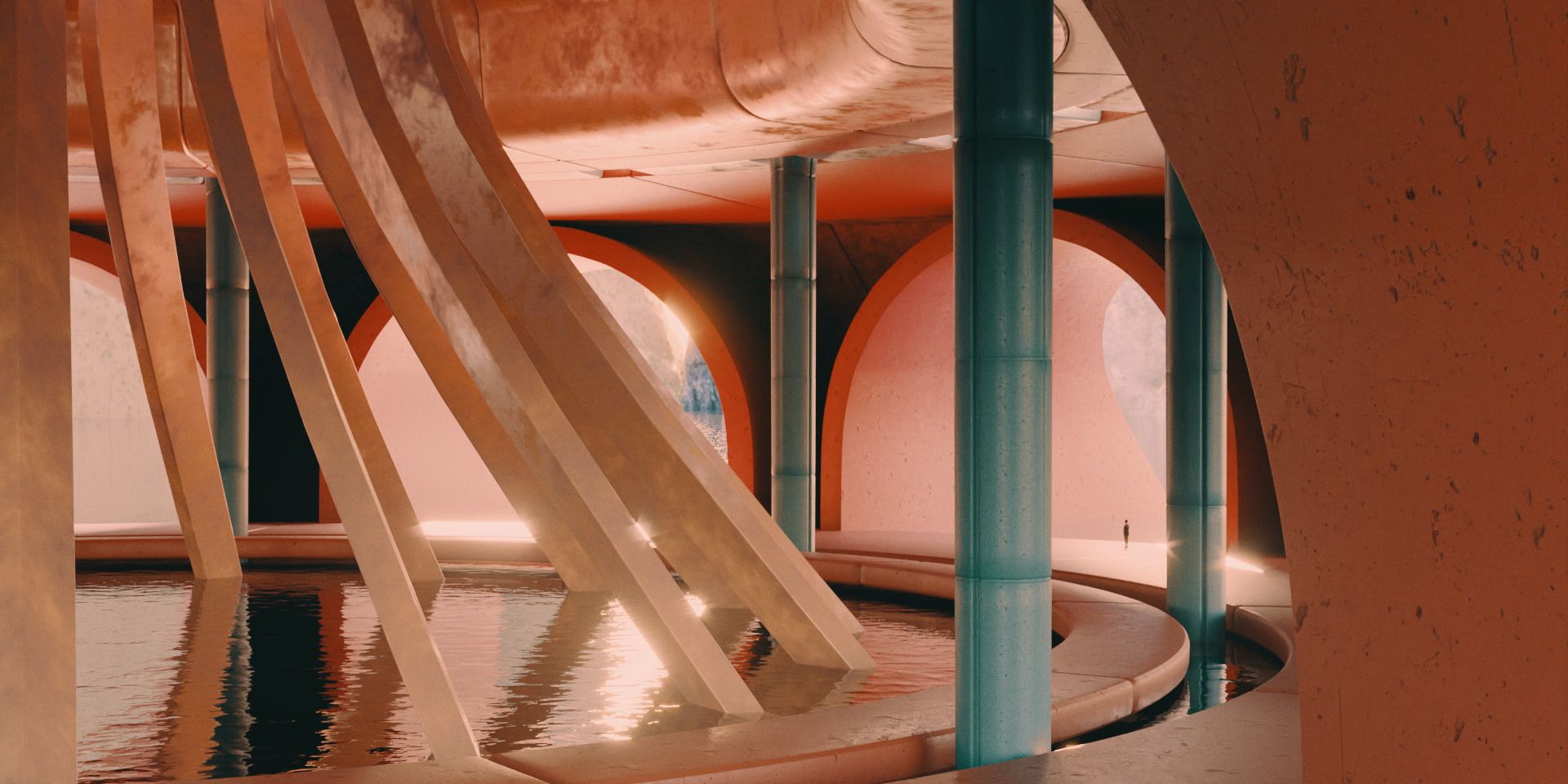 As inspiration, I used some of Richard Vander Wende's designs for the game Riven, and the aesthetics of Myst, along with some explorations made in Midjourney