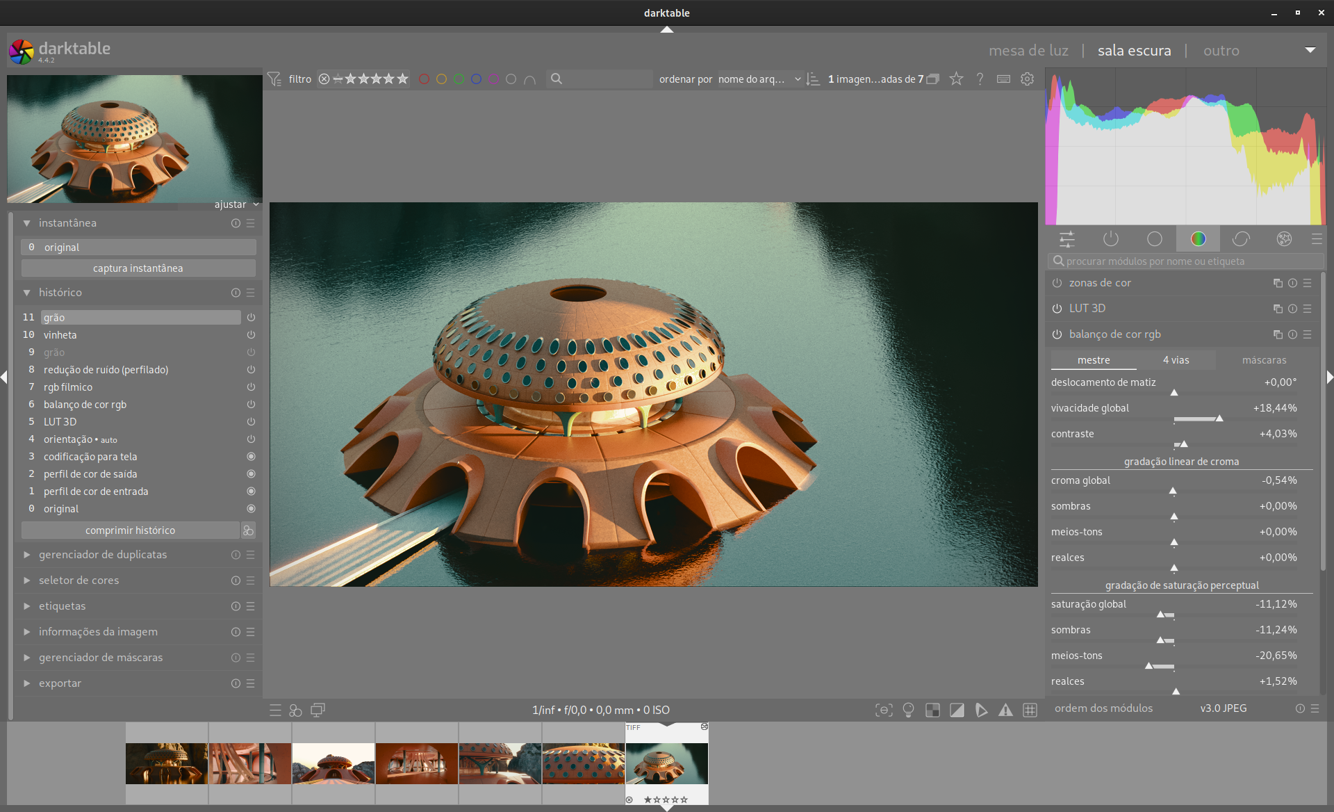 Fiz a pós produção no software Darktable.