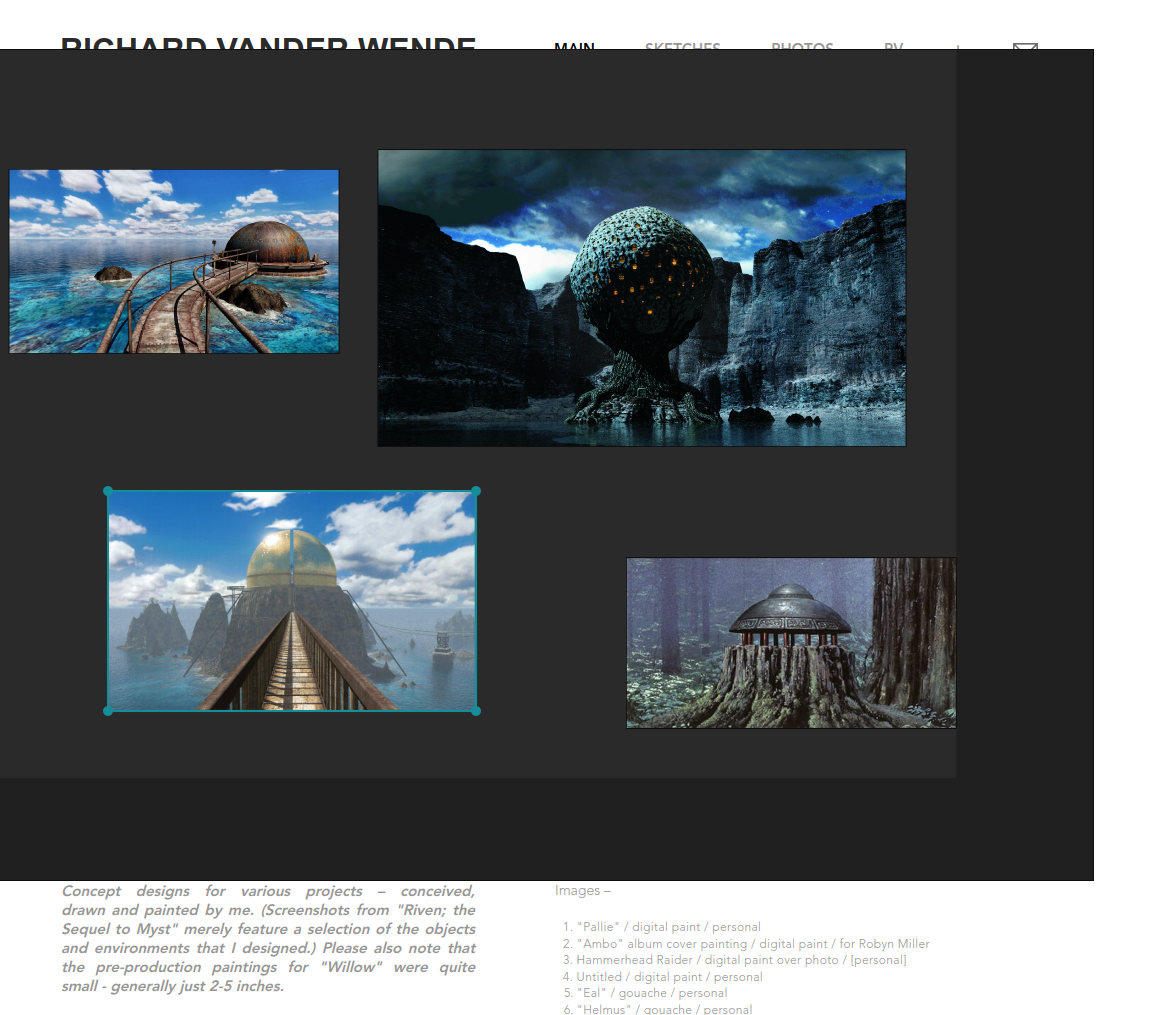 Como inspiração utilizei algumas dos designs de Richard Vander Wende para o jogo Riven, e a estética de Myst, junto com algumas explorações de feitas no Midjourney.