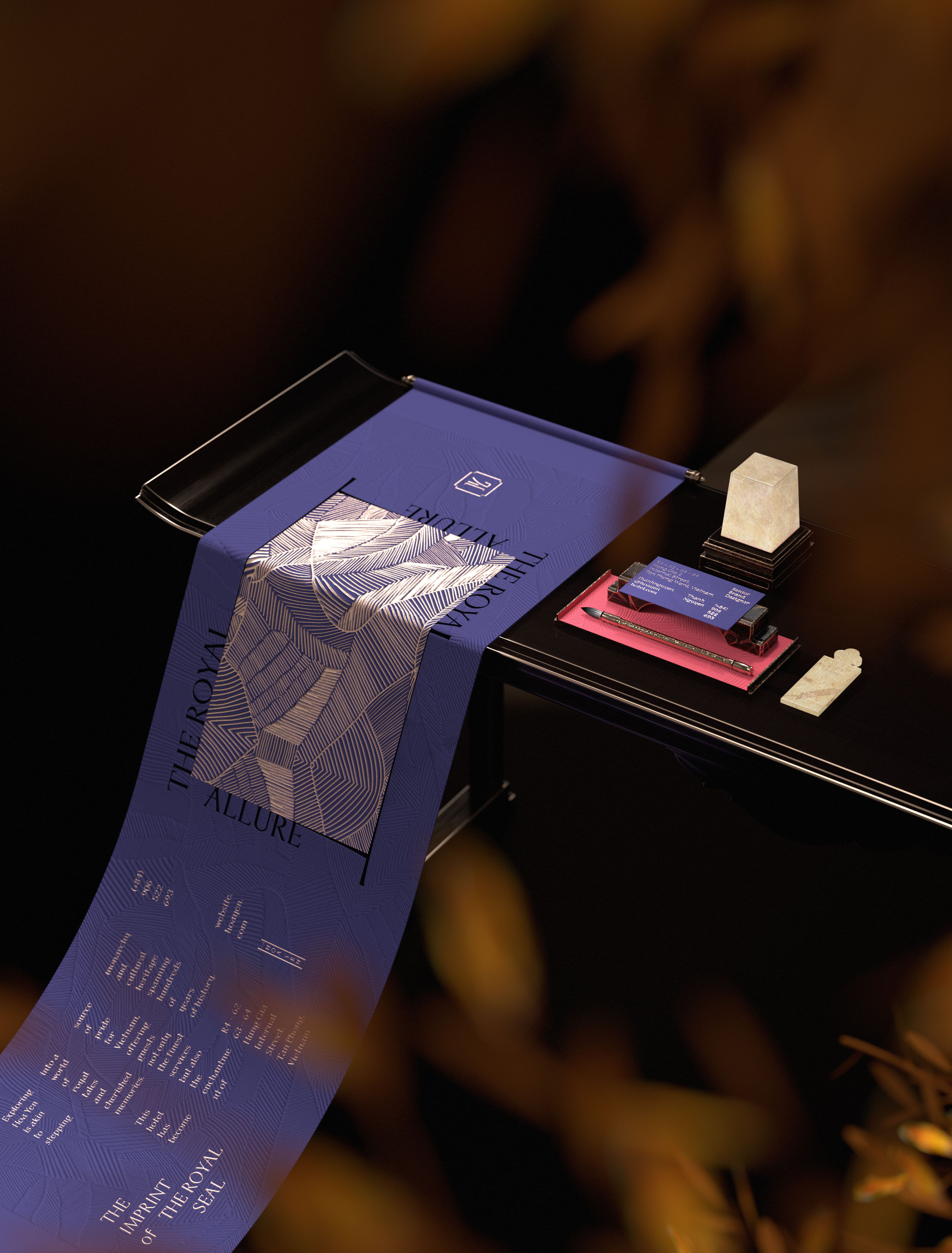 “The wood scent weaves into the space, lingering on the detailed carved patterns on the wooden door. Deeply inside, it carries many ups and downs of the Vietnam Royal Family."