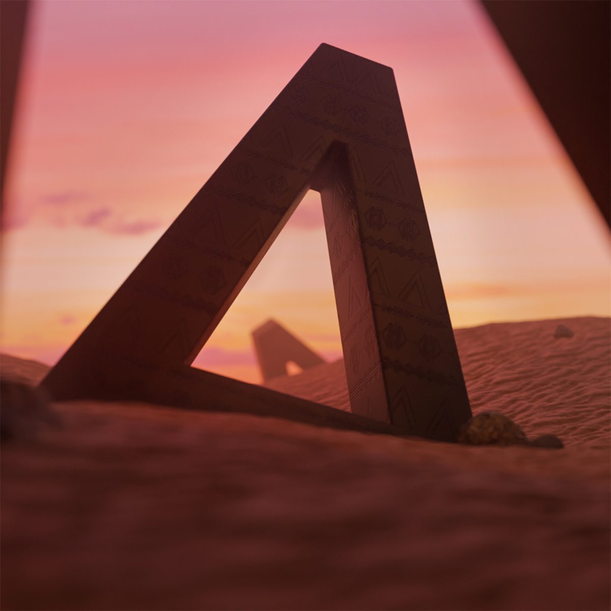 PS: the last image, I just made it for fun they didn't ask for it, but they got it haha, cause I thought it would look pretty cool and I took the chance to learn how to make sand texture, and I thought the patterns would look cool as some kind of ancient scriptures, so I scattered 3 logos in the set, with a sky with emission on it, some volumetrics, debt of field and we good to go.