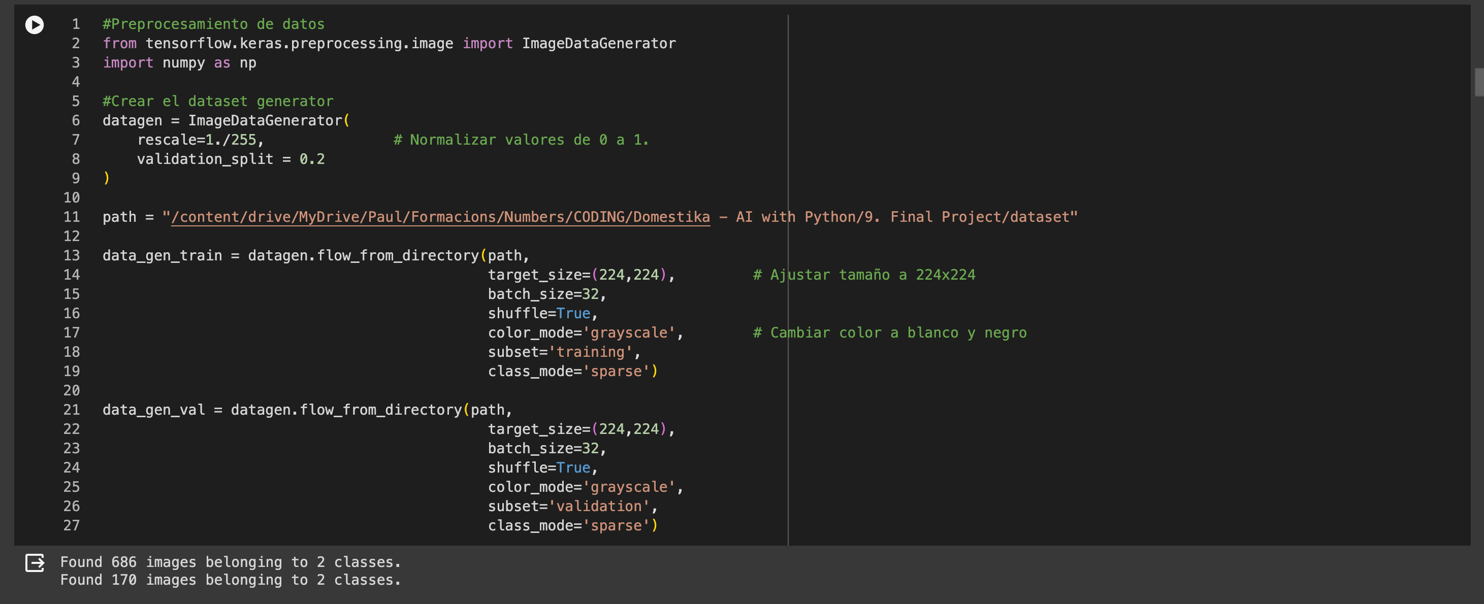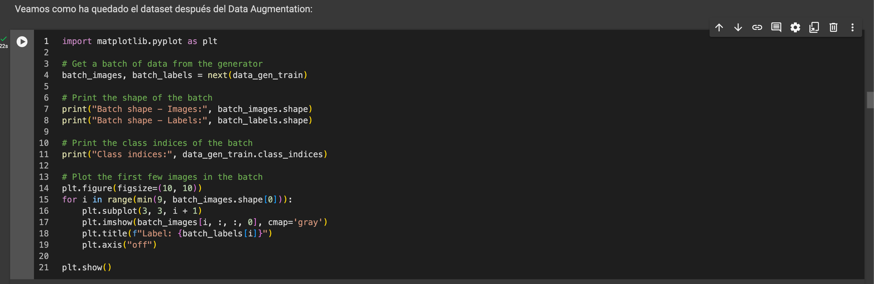 Volveremos atrás y retomaremos el proyecto justo después de haber importado los datasets. Justo cuando usamos el módulo ImageDataGenerator para hacer la normalización de las imágenes, incluiremos los parámetros de Data Augmentation: