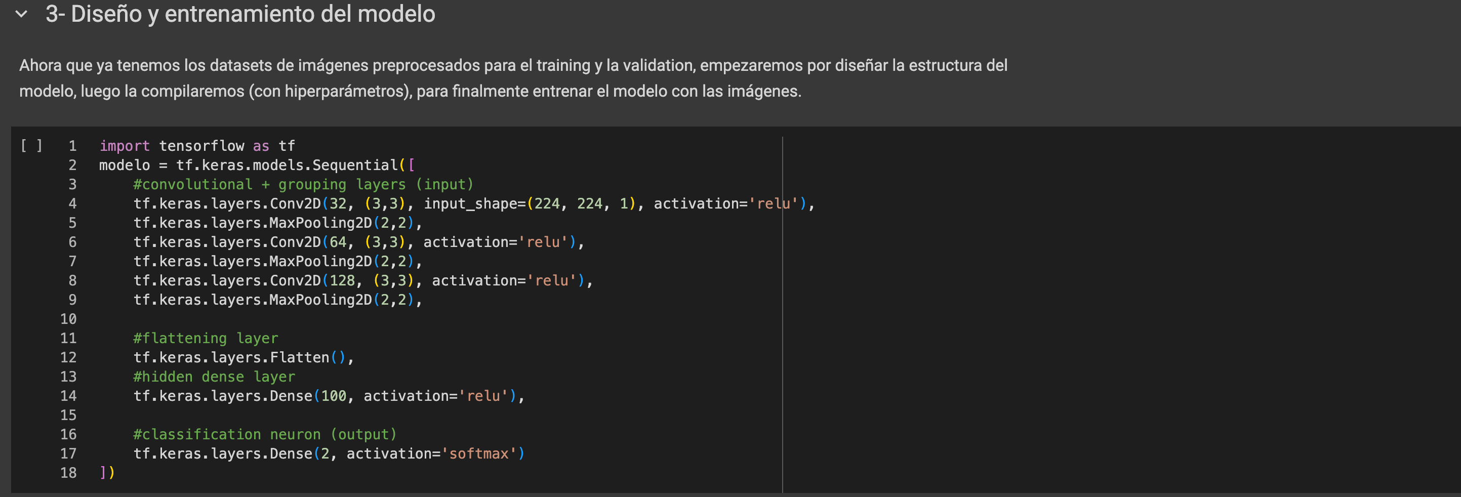 Siguiendo la línea del curso, le sacaremos partido a las redes neuronales convolucionales (CNNs) para detectar patrones en las imágenes y entrenar el modelo. Haremos 3 ejercicios en paralelo con distintas metodologías aprendidas en el curso: