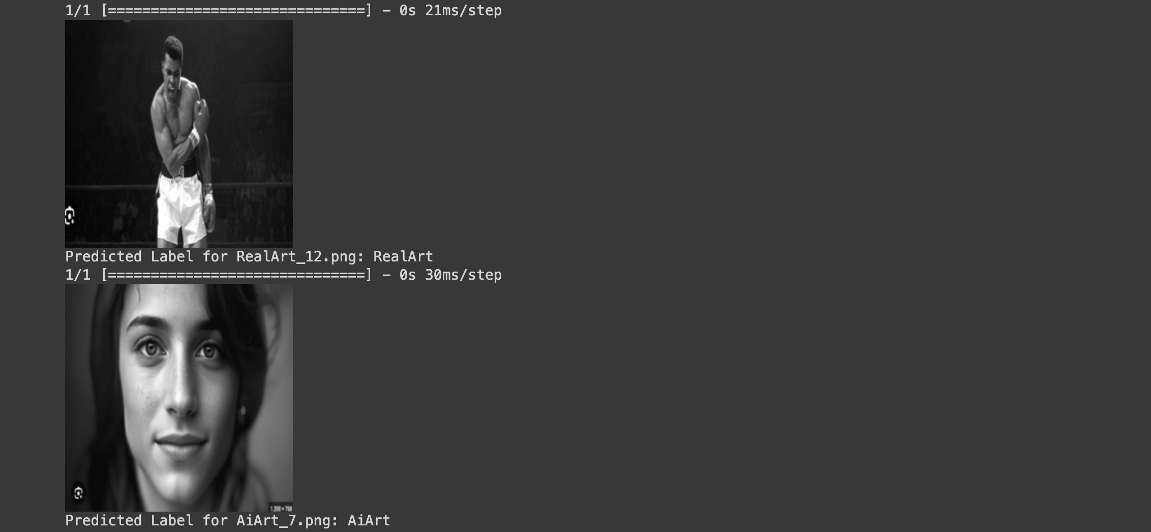 Sin embargo, tal y como está el modelo, ya lo podríamos usar para detectar arte hecho por IA, por ejemplo como filtro de imágenes generadas por IA en concursos de fotografía/arte. No sería tan fiable como para descalificar propuestas, pero sí para hacer una primera clasificación automática para luego estudiar cada detección manualmente por un humano.