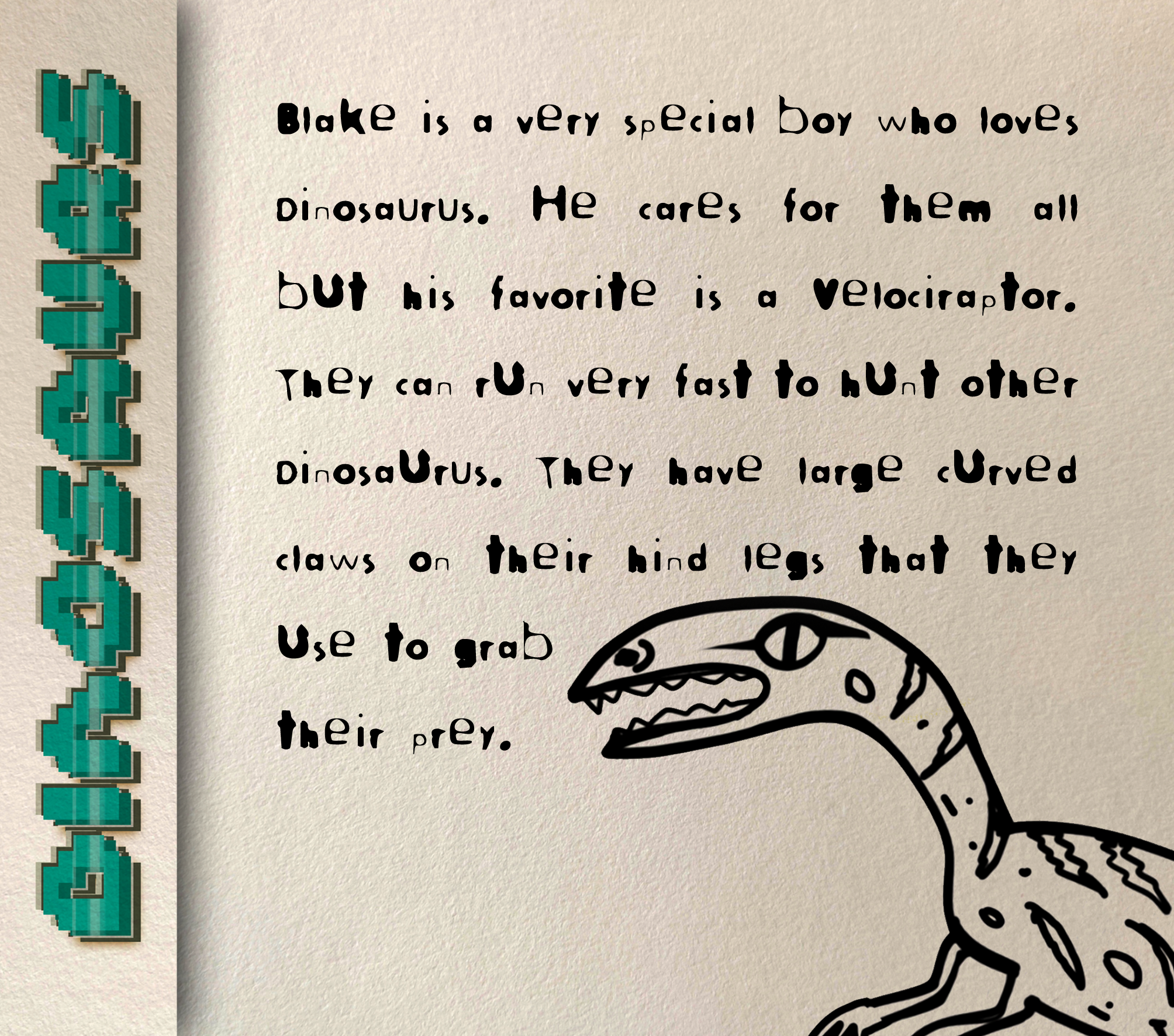 Ilustrasi ini dibuat untuk Blake dan seperti semua anak laki-laki, mereka menyukai Dinosaurus.