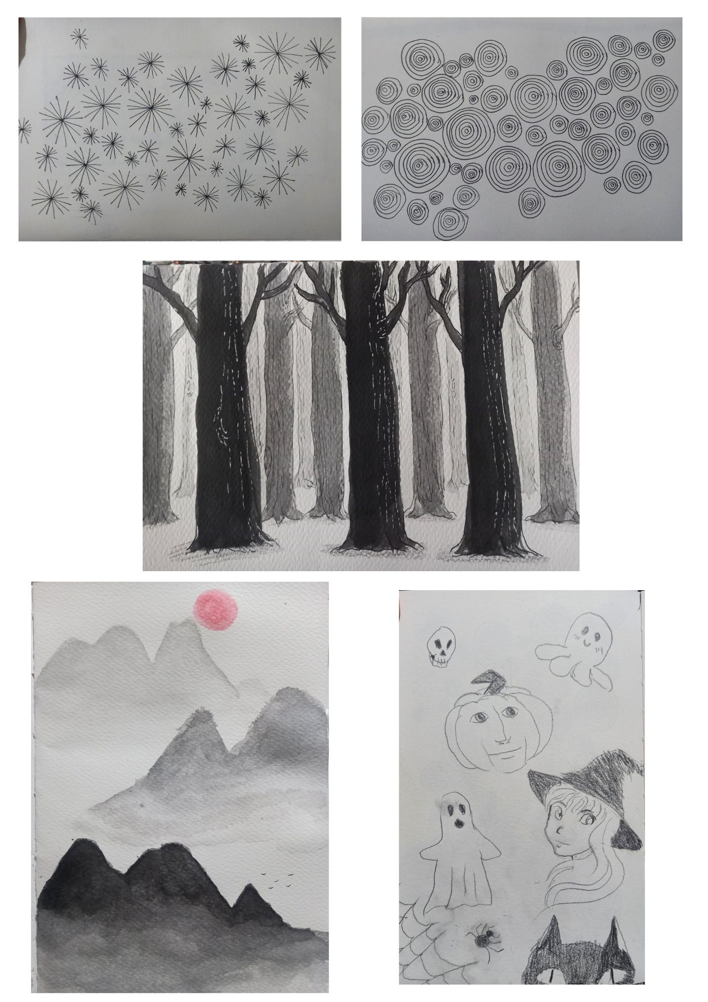 Durante el curso trabajé principalmente con materiales tradicionales, experimentando con: