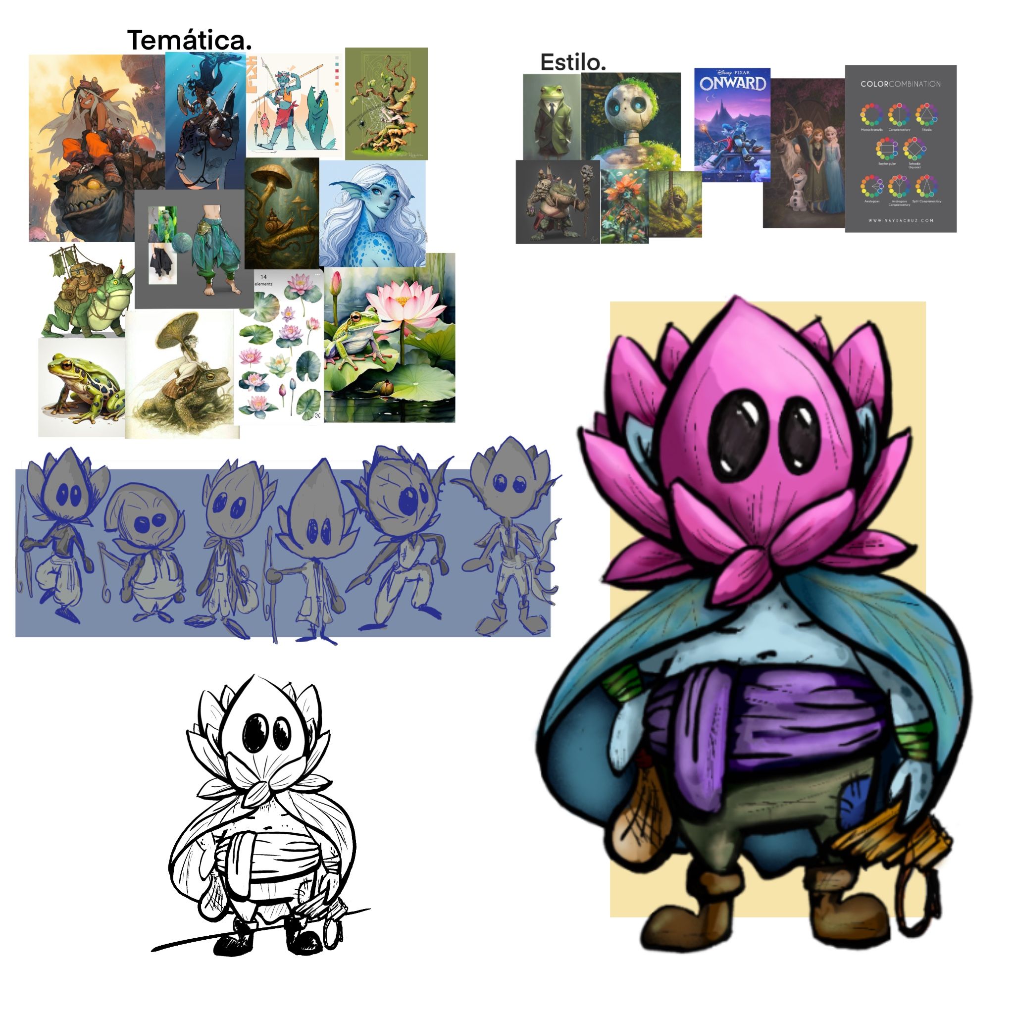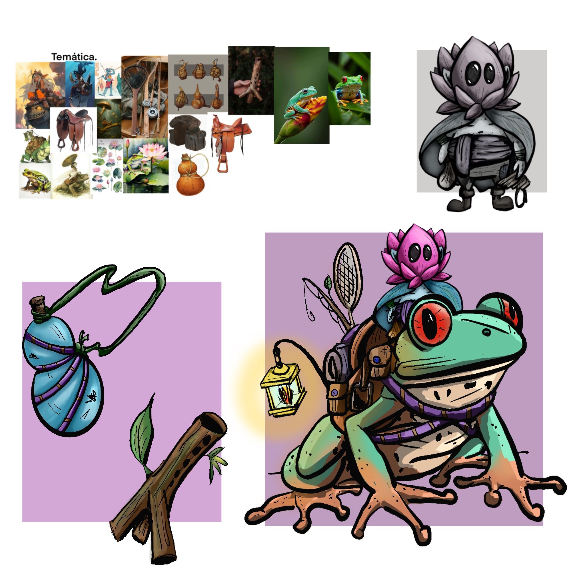 Empece con una idea que venía desarrollando a partir de otros personajes anteriores que realicé y quería buscar la diferencia de que este personaje se centre más en vivir en los ríos o lagos teniendo así su principal tarea de pescador y recolector, trabajando así con una montura para darle más realismo y así surgió esto. Trabajé con PROCREATE y este fue el resultado final….