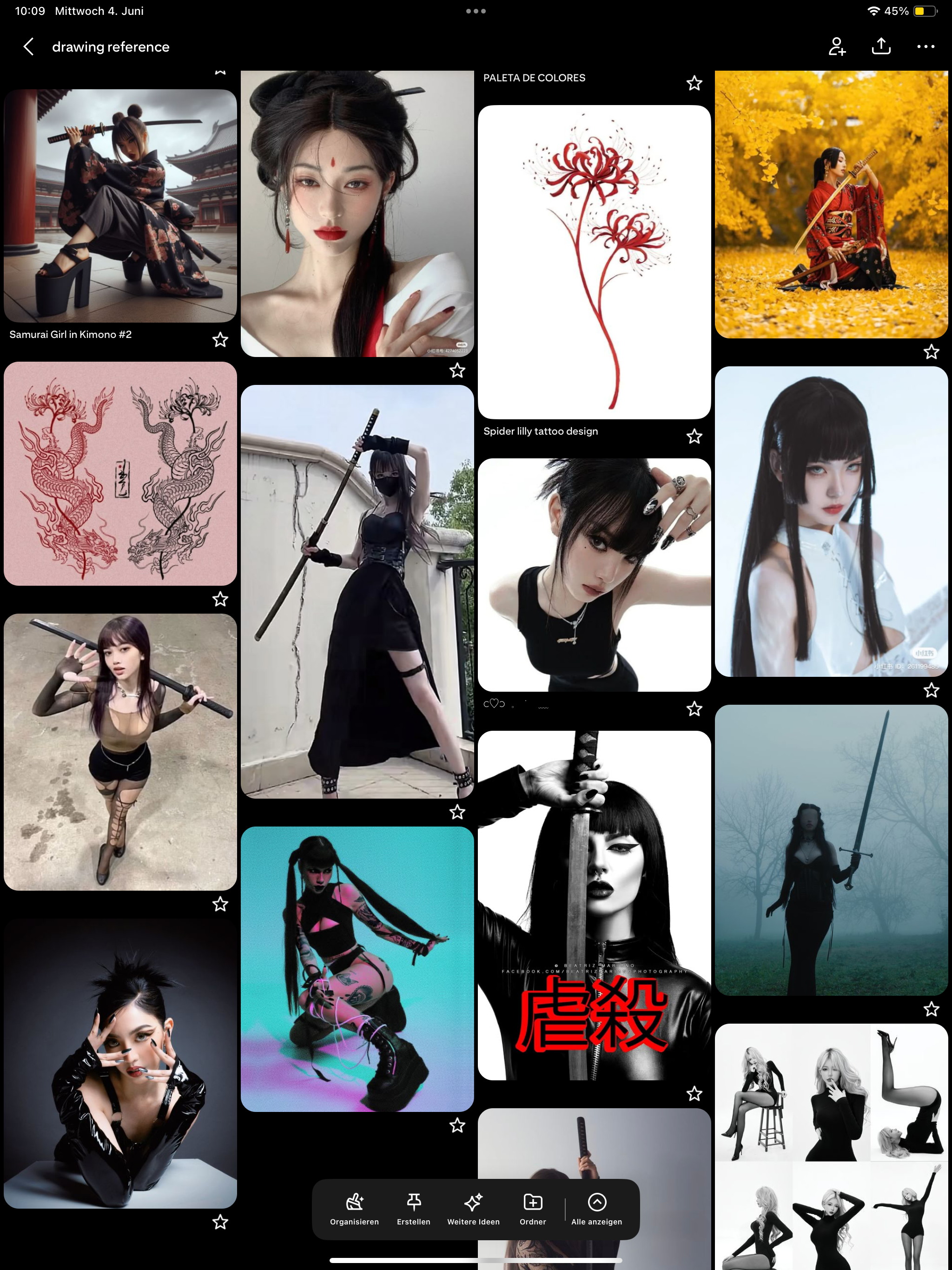 Ich lasse mich gerne von Pinterest inspirieren. Dabei suche ich Referenzen zu Posen, Frisuren, Outfits, Farbschematas, Pflanzen etc. und füge sie in meine Liste ein.