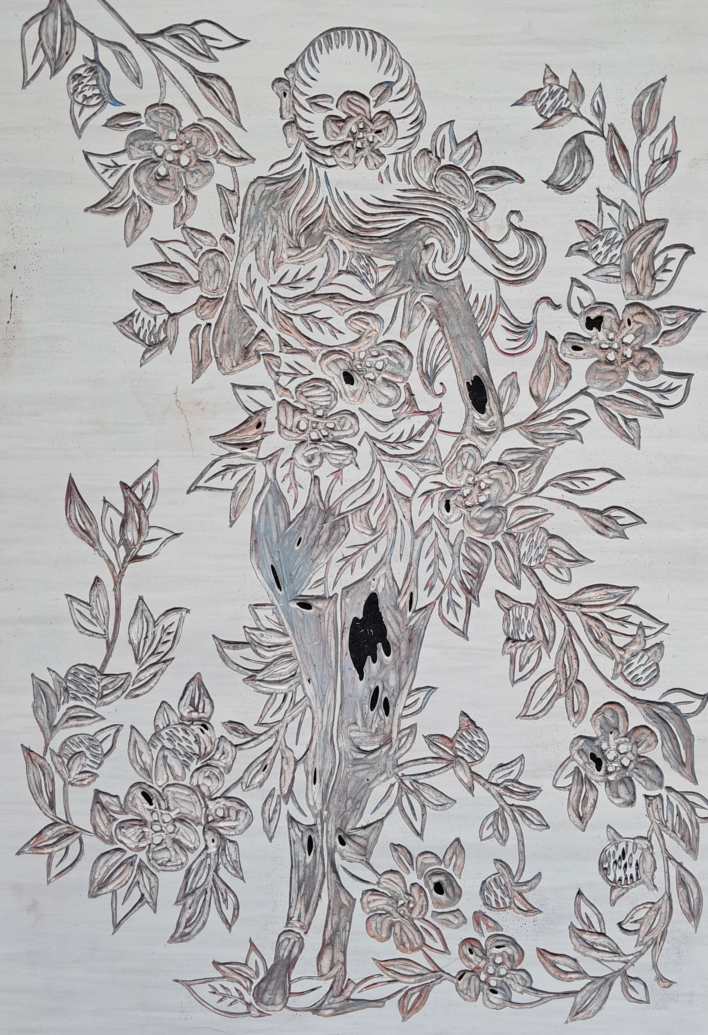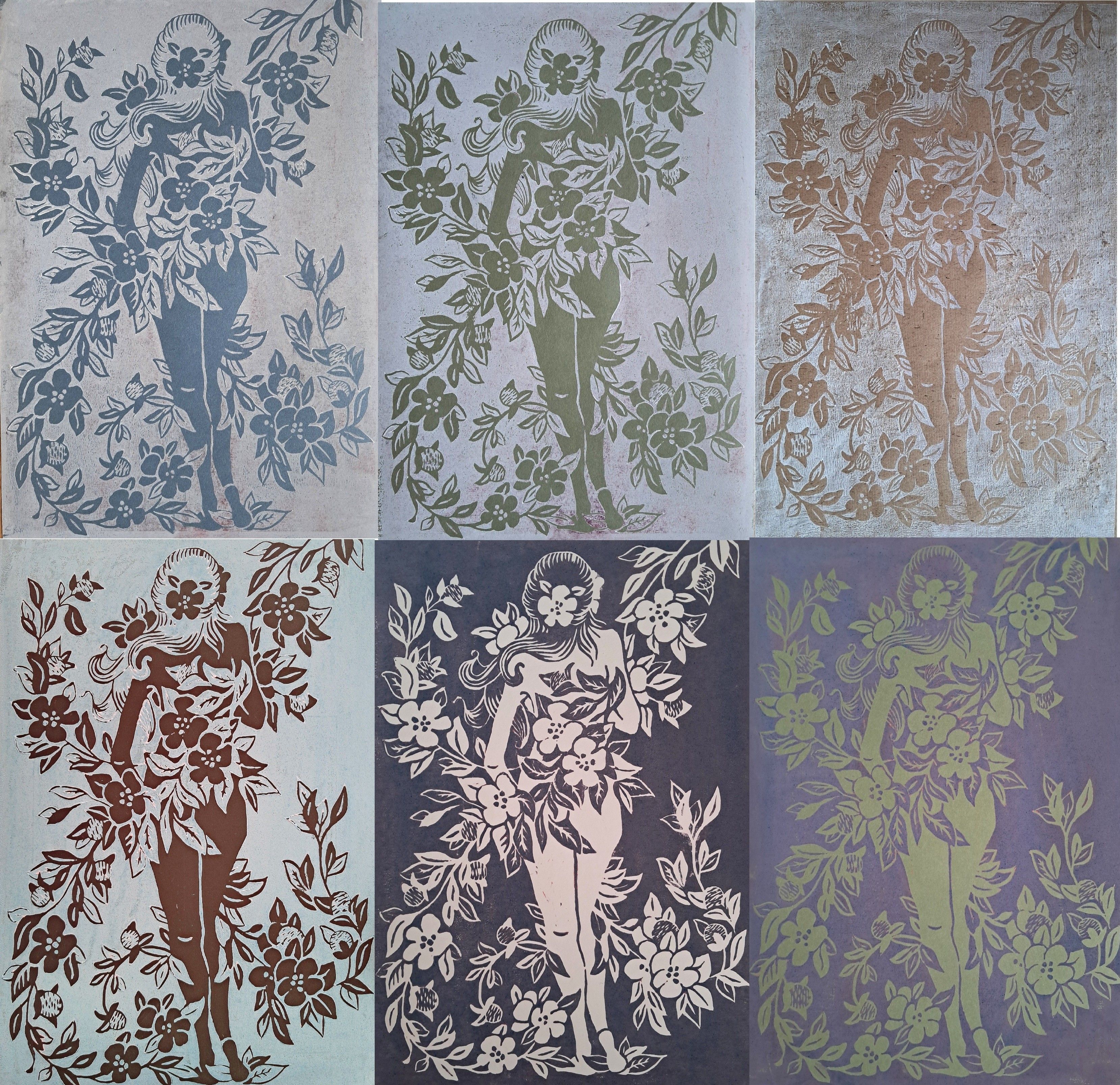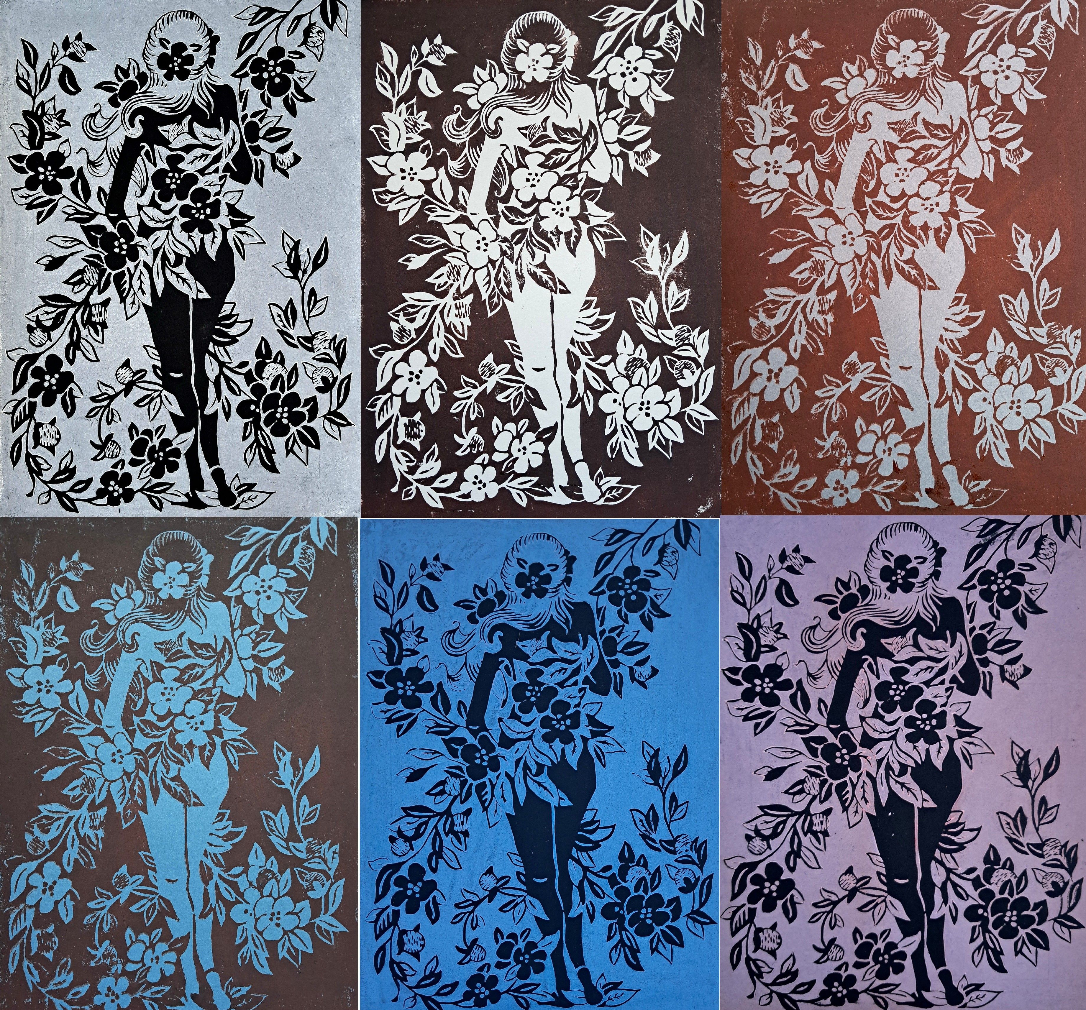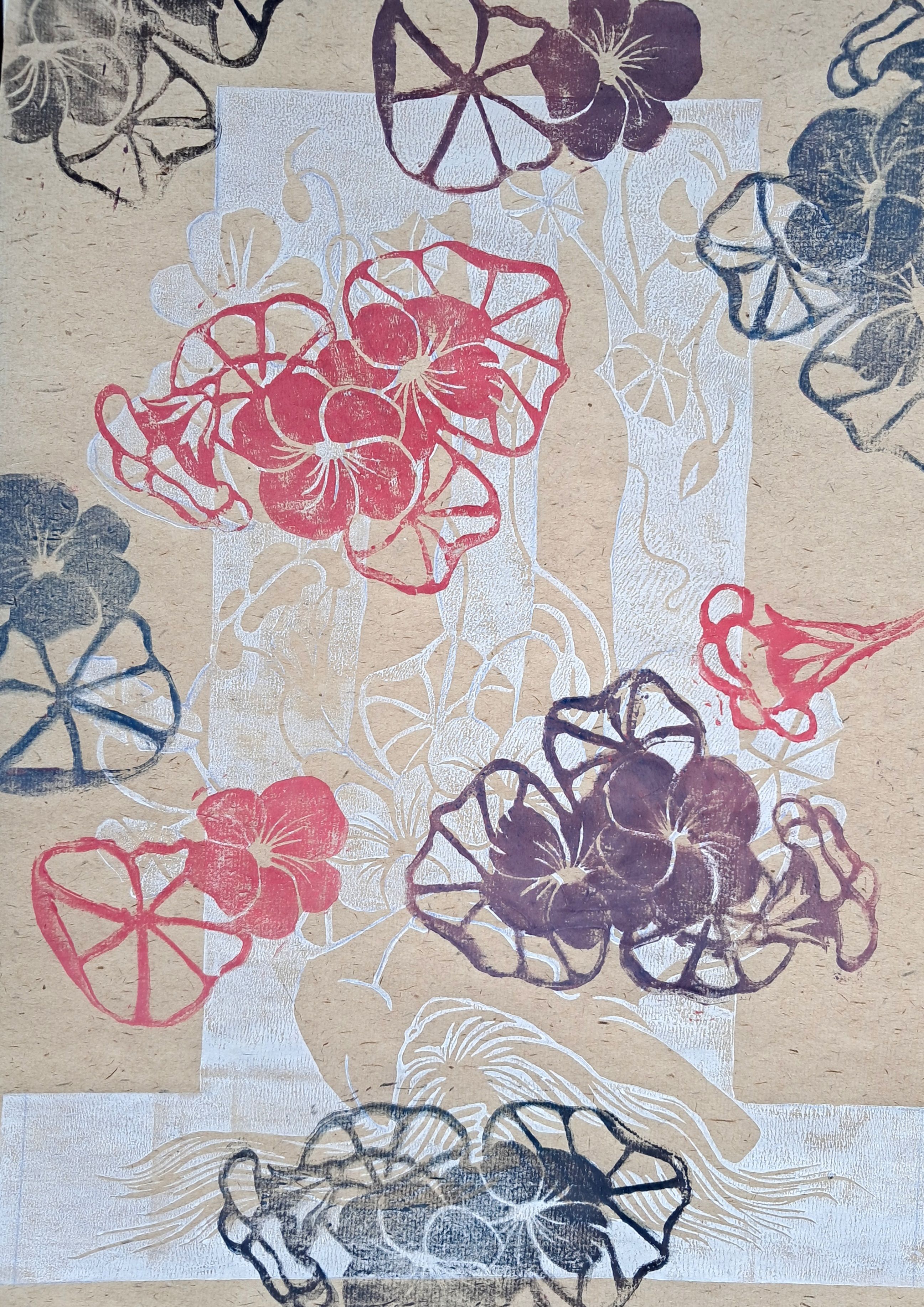 Stworzyłam dwa linoryty. "Sara w kwiatach" i "Raja i nasturcje".