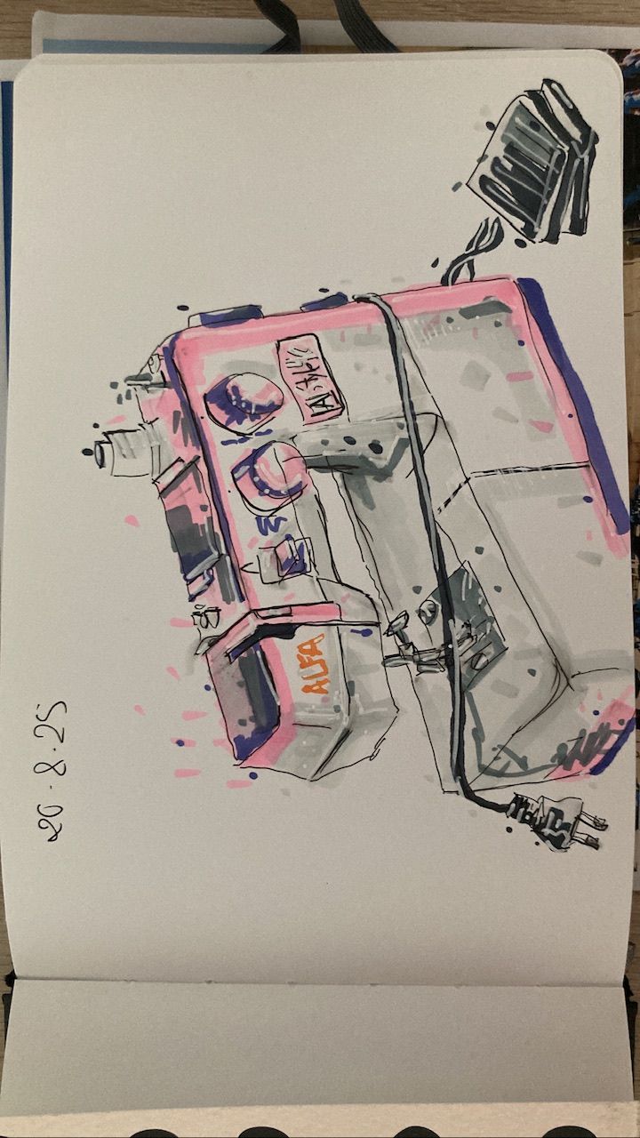 He utilizado papel cranson A5 horizontal multitécnica, rotuladores shinhanart touch, y graph it, delineadores micron de 0.1, 0.3 y 0.5 y un posca blanco de punta fina.