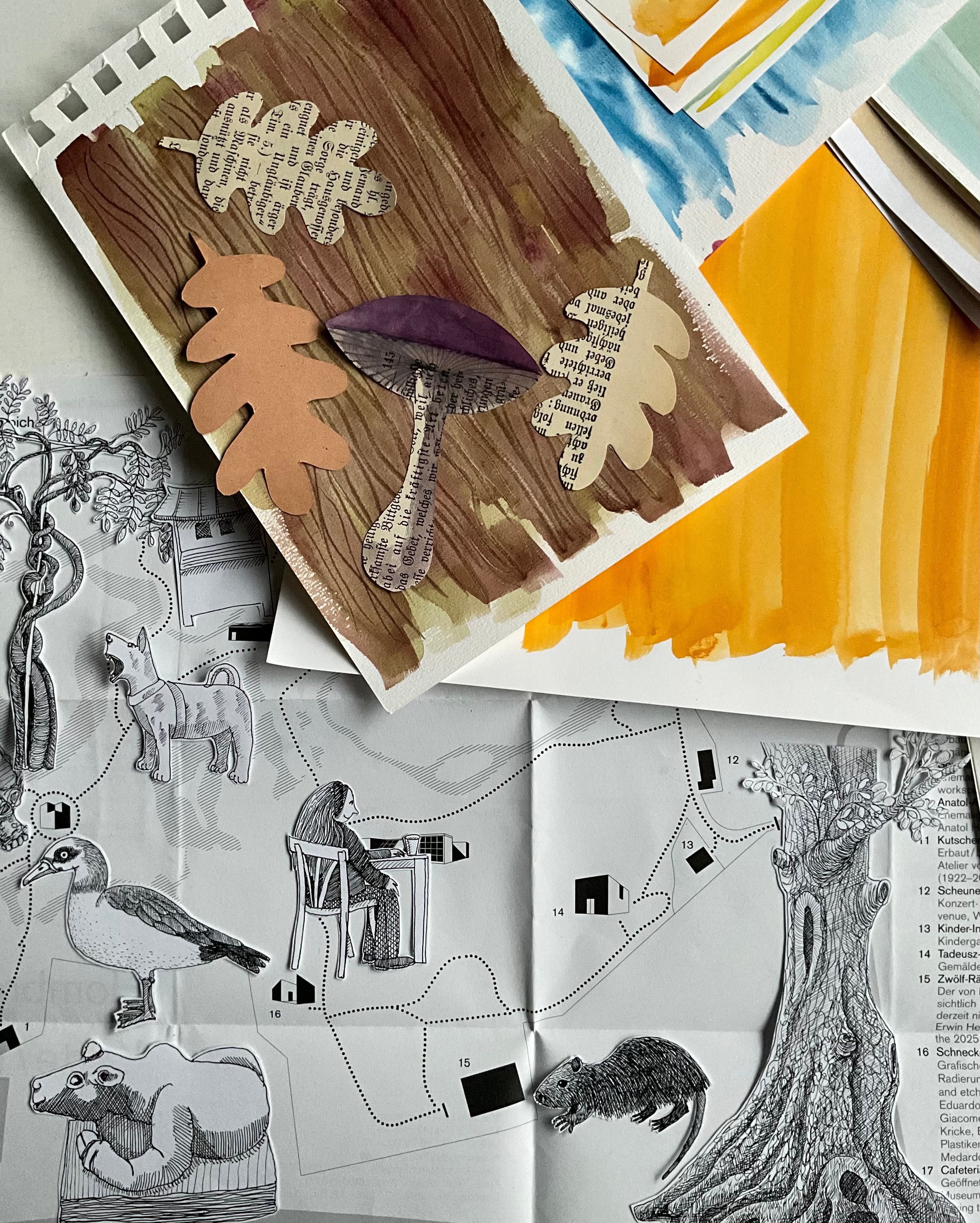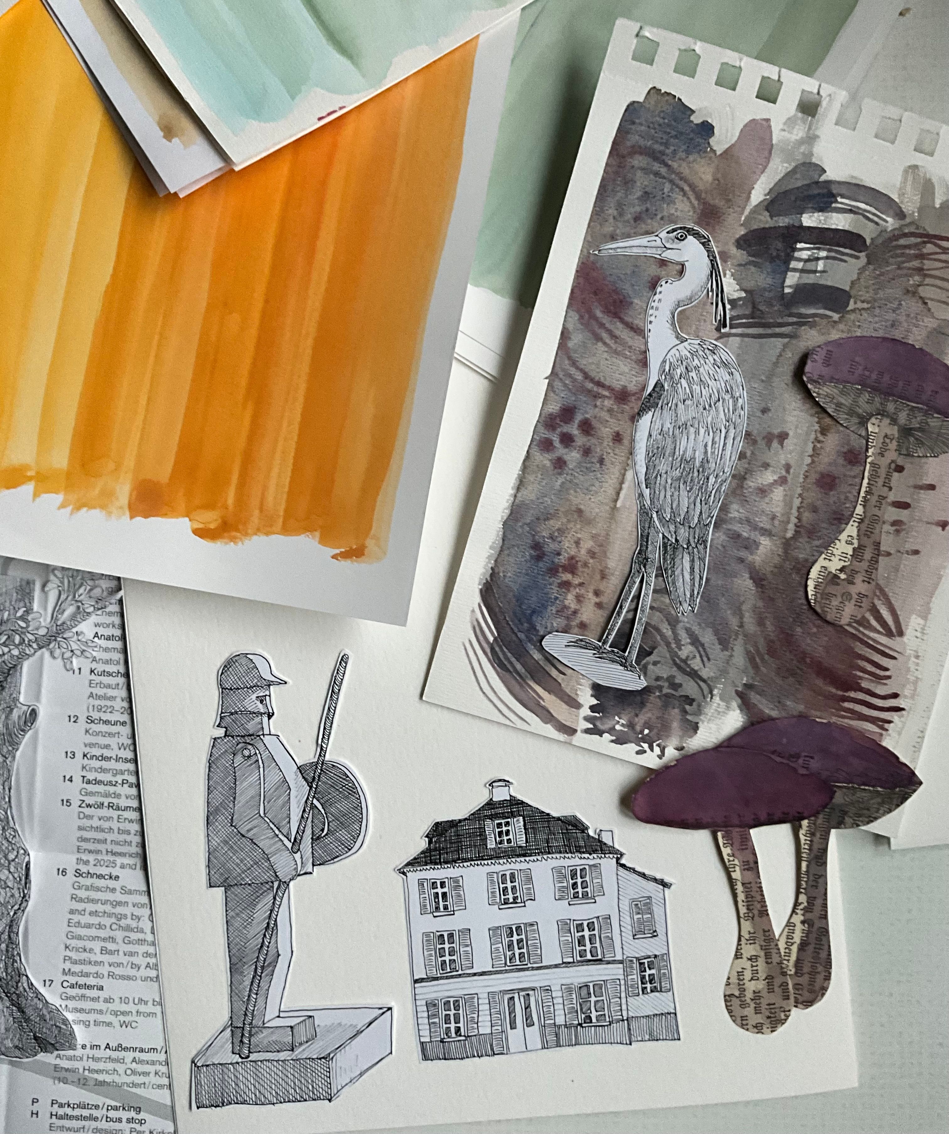 Ich möchte mit den von mir gezeichneten Bildern ein Fanzine erstellen. Dabei soll der Weg, den man durch den Museumspark geht, nachgezeichnet werden.