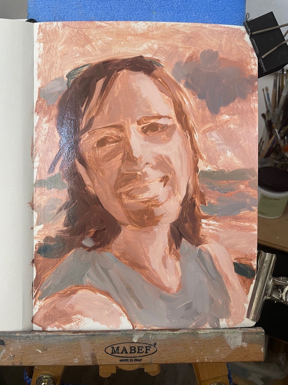 An expressive oil portrait on paper, following Camila O’Gorman’s course.