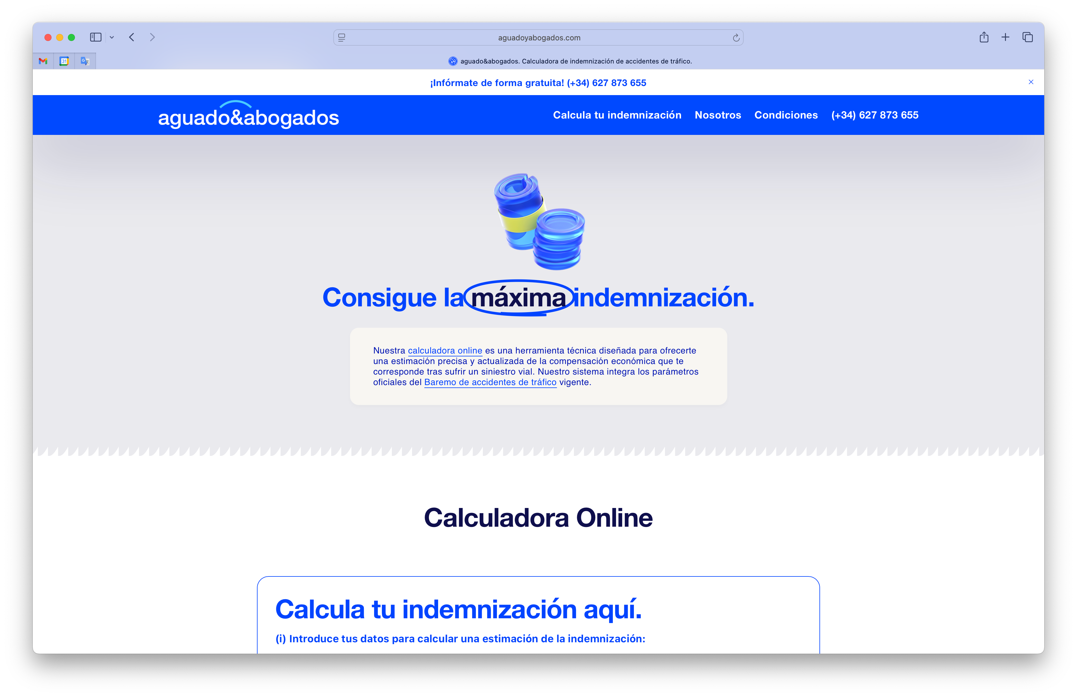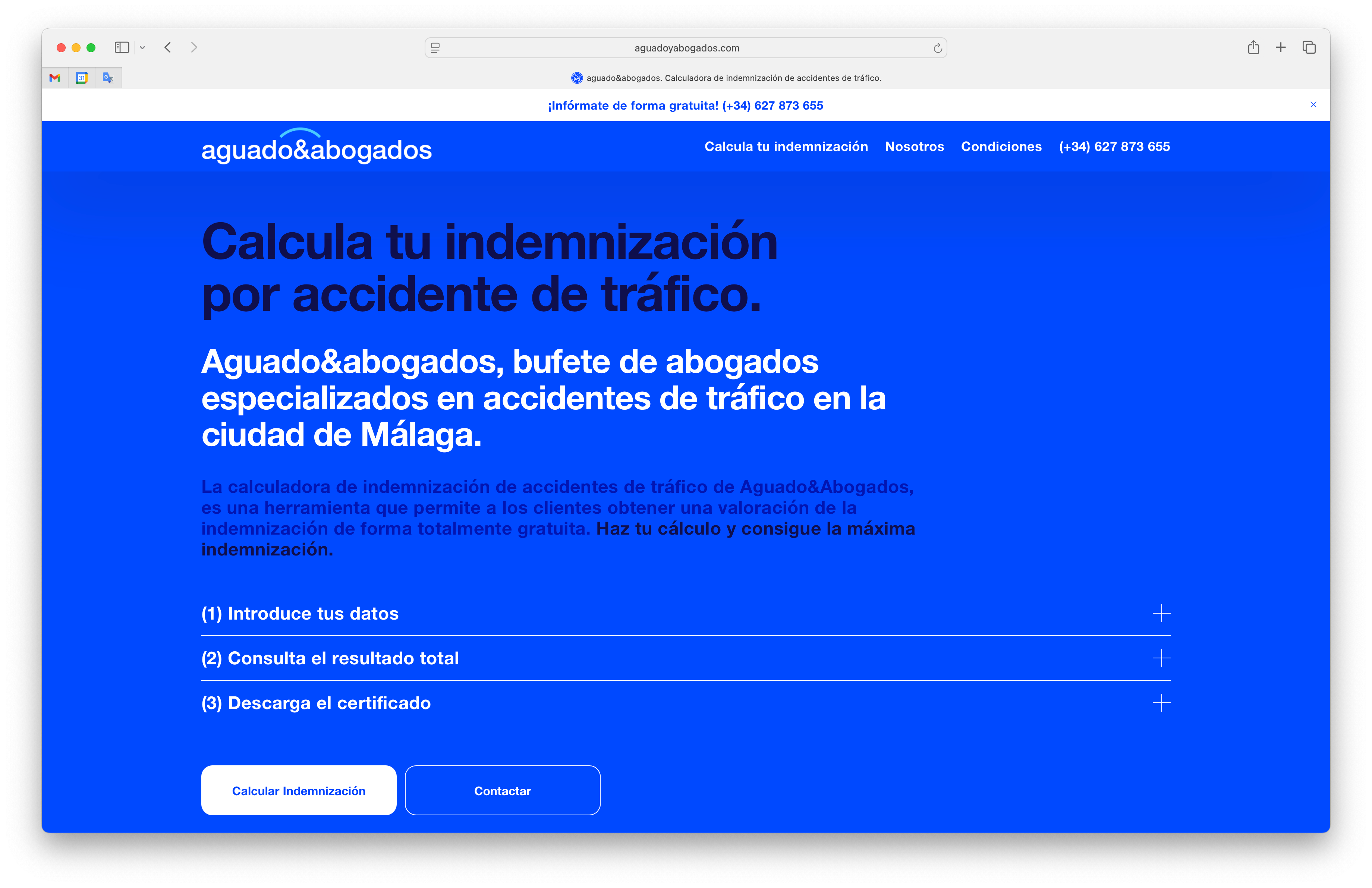 Aguado&Abogados, bufete de abogados especializado en accidentes de tráfico en Málaga. Su calculadora de indemnizaciones es una herramienta técnica que te ofrece, de forma totalmente gratuita, una estimación del importe al que podrías optar. Realiza tu cálculo en www.aguadoyabogados.com y asegura la máxima compensación posible.