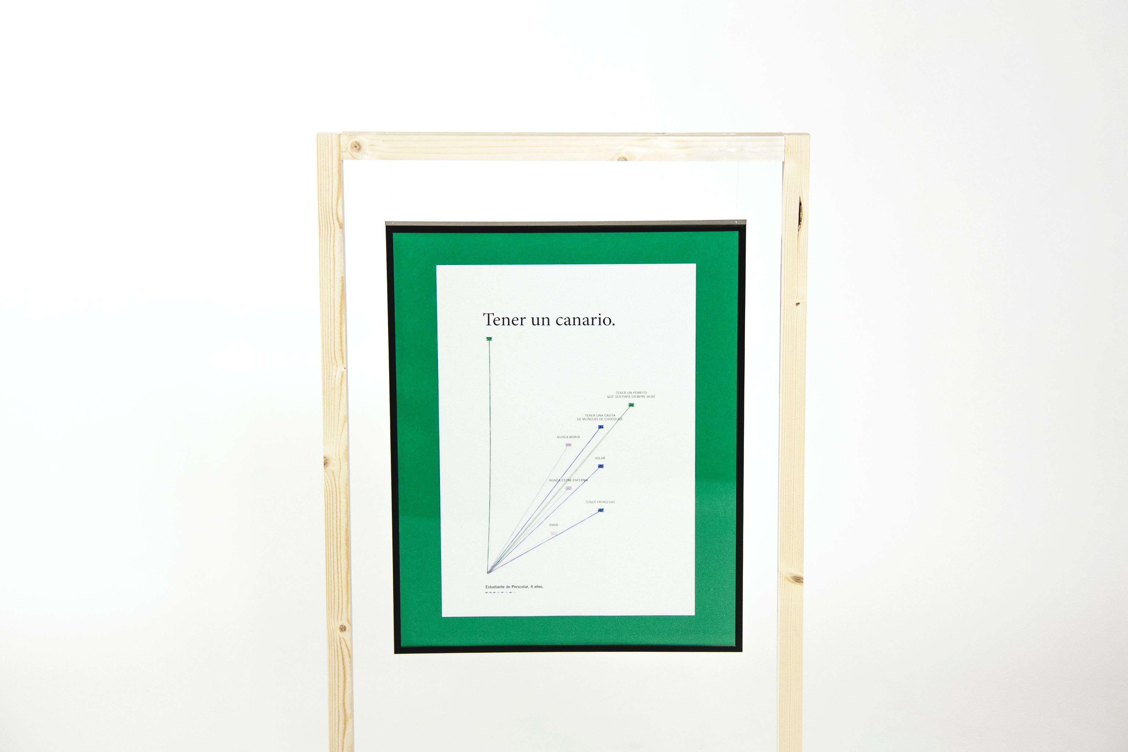 Los deseos se constelan en orden de importancia. El color de fondo del cuadro es el que pertenece a la tipología de deseo asociada. Se organizan estas metas personales por filas según el orden en el que los menciona la persona y se reorganizan en columnas según temática. De este modo, cada persona tendrá su propia constelación. Abajo a la izquierda, encontramos el nombre de la persona a la que pertenecen, punto donde se encuentran todos los deseos, se ordenan y generan el código que encontramos en el palo. Por la parte trasera, se presenta la figura de la persona a la que pertenece el póster.