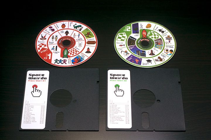 Diseño de packaging e ilustraciones para el disco de Space Weirdo "Press Start".