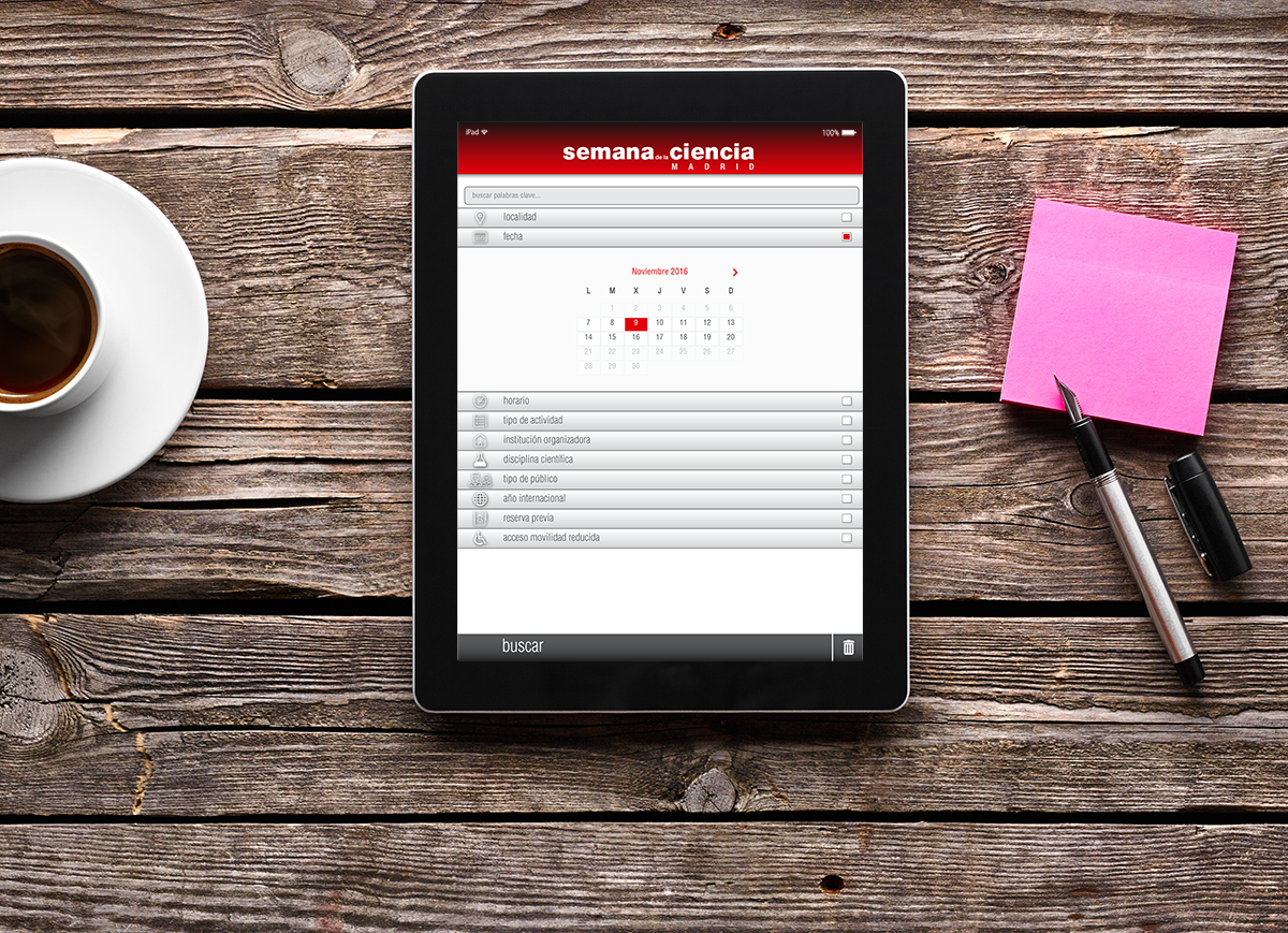 Durante una semana, en Madrid se llevan a cabo más de 1.000 actividades de divulgación científica, lo que obliga al ciudadano/a a hacer una pequeña planificación para poder asistir en las diferentes localizaciones a aquellas que considere más interesantes. Los últimos años, en parte como consecuencia de la gran irrupción de la tecnología móvil, la organización venía detectando la necesidad de crear una app que contuviera de forma segmentada todas las actividades que se desarrollarán del 7 al 20 de noviembre de 2016 en toda la Comunidad de Madrid. Tras meses de trabajo… ¡ya está disponible en Google Play y App Store!