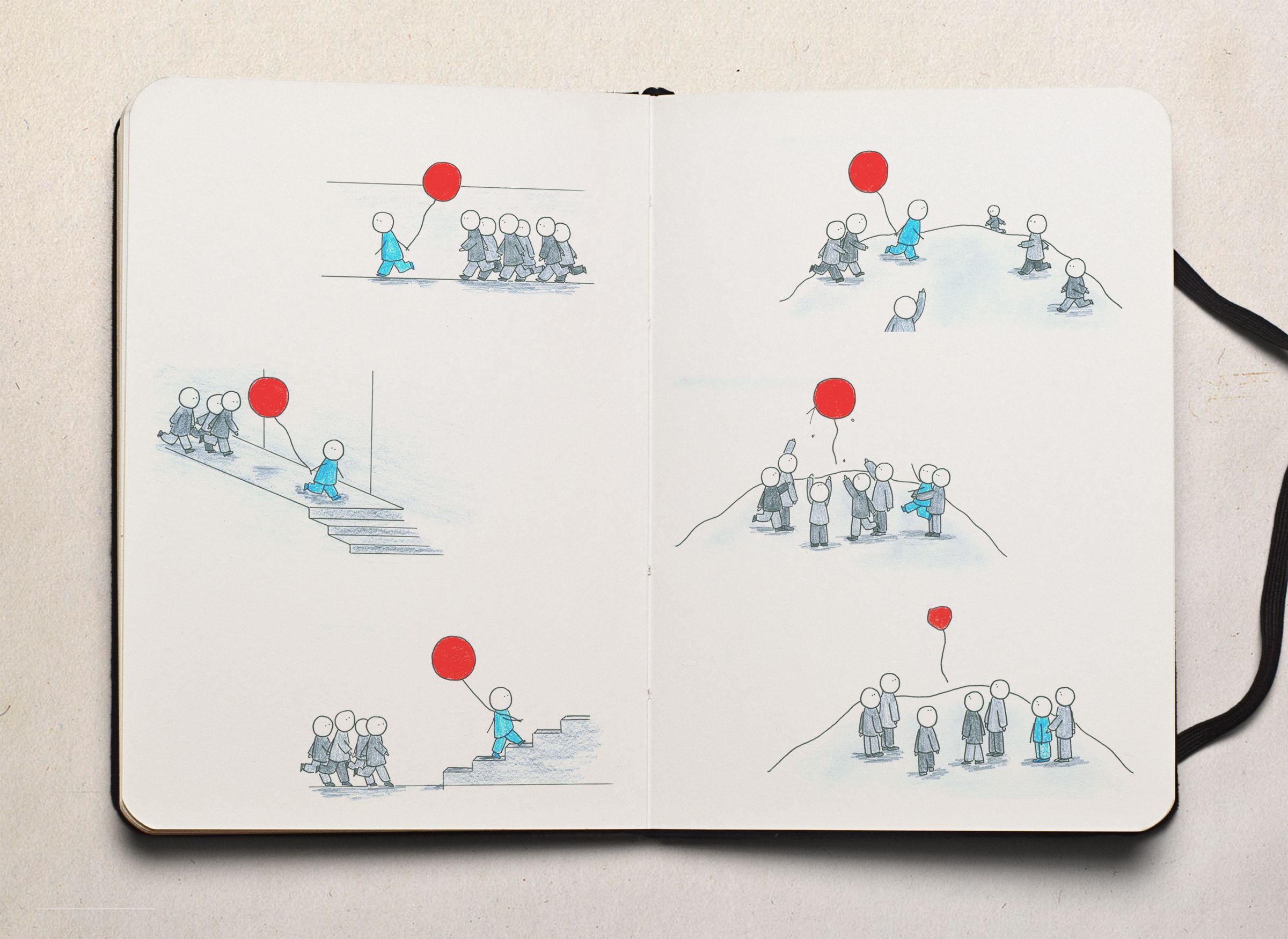 The medium-length film “Le ballon rouge” by Albert Lamorisse is represented in more than 150 illustrations.