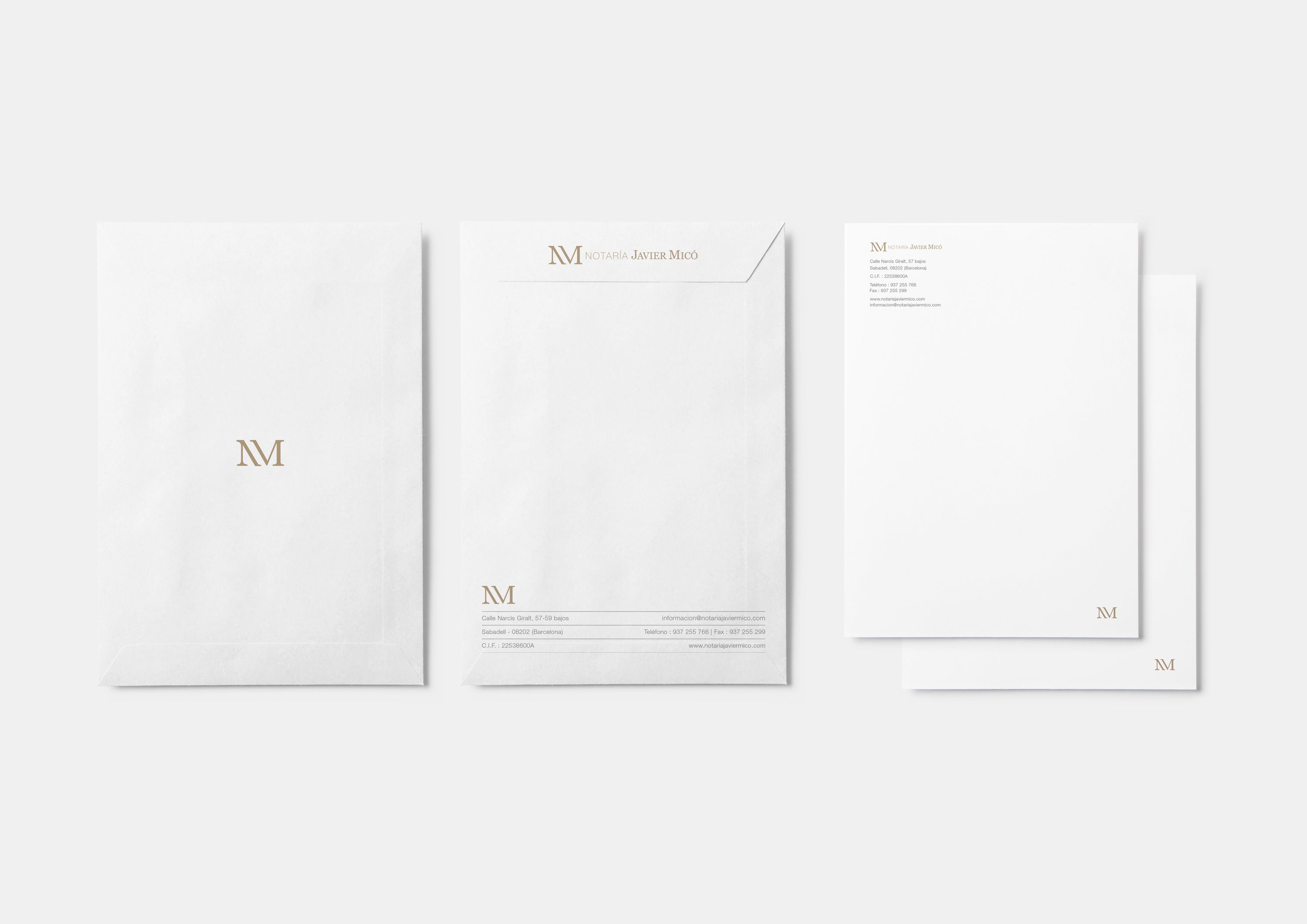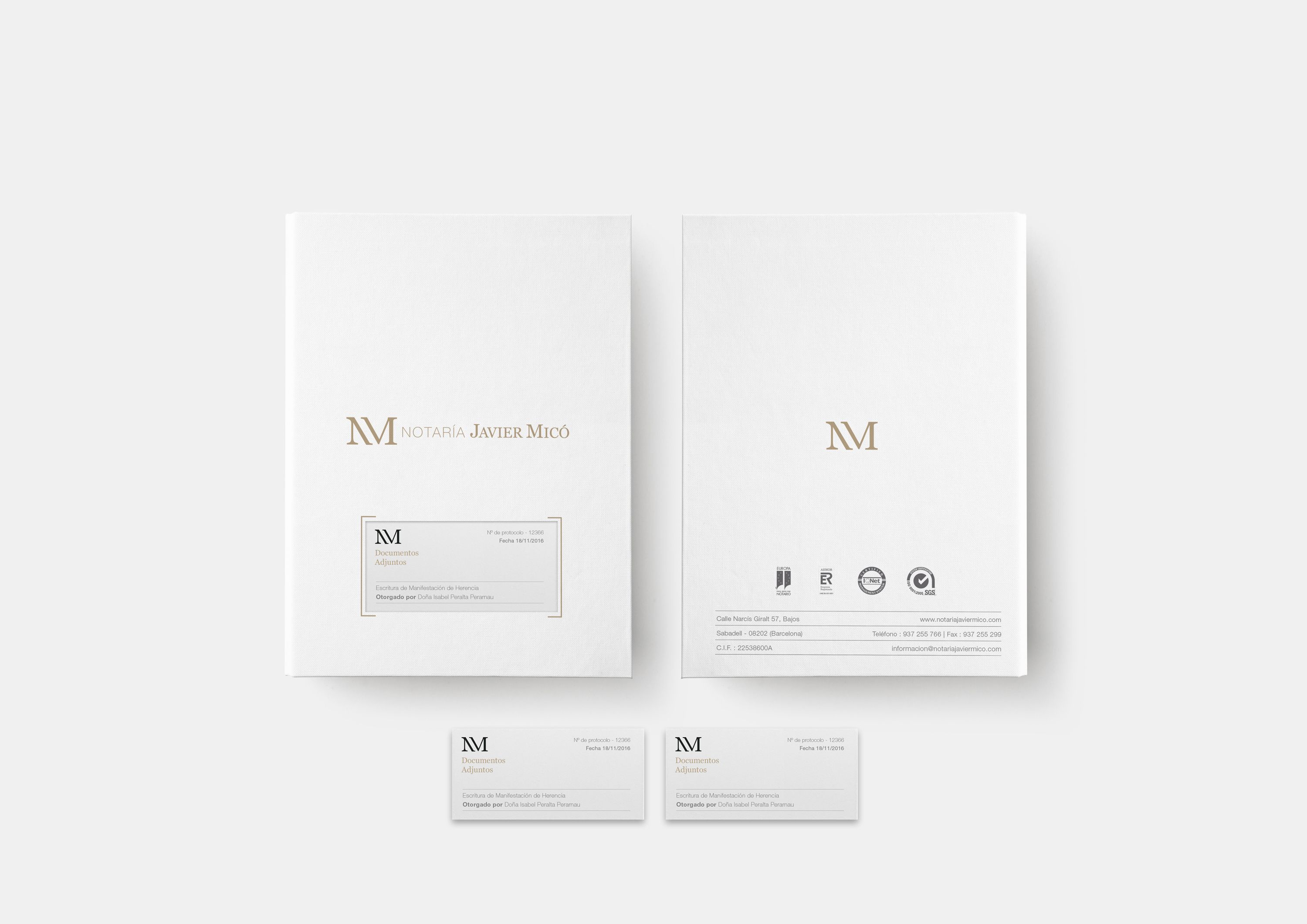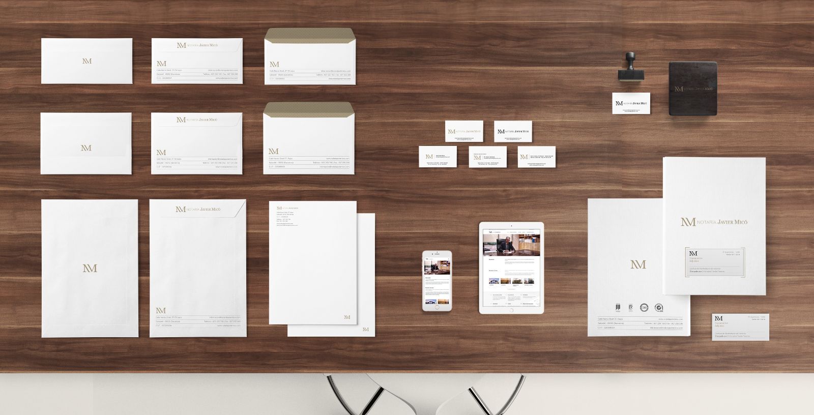 Diseño de identidad visual y página web corporativa para Notaría Javier Micó Se creo el logotipo y el diseño de soportes para papelería.