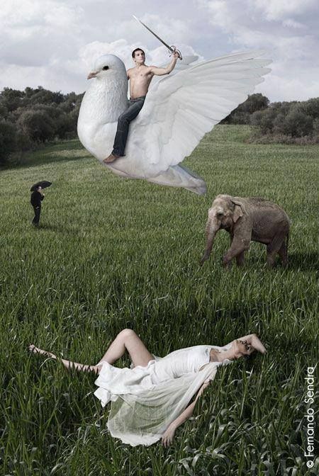 Trabajando con técnicas informáticas que el mundo de la fotografía digital ha puesto en manos de los artistas como una herramienta más de trabajo, al igual que lo son el lienzo, el óleo o la arcilla, he descubierto las infinitas posibilidades que se abren a la creatividad y para inventar situaciones e instantáneas imposibles en la realidad.