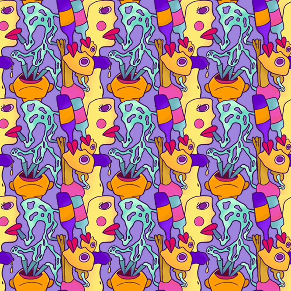 Hola jeje, este es el pattern que hice, conceptualmente me enfoque en los principales vicios que uno puede encontrarse en la vida (sexo, drogas y alcohol), lo ilustre de una manera bastante surrealista, cualquier consejo o crítica constructiva es totalmente bienvenida.