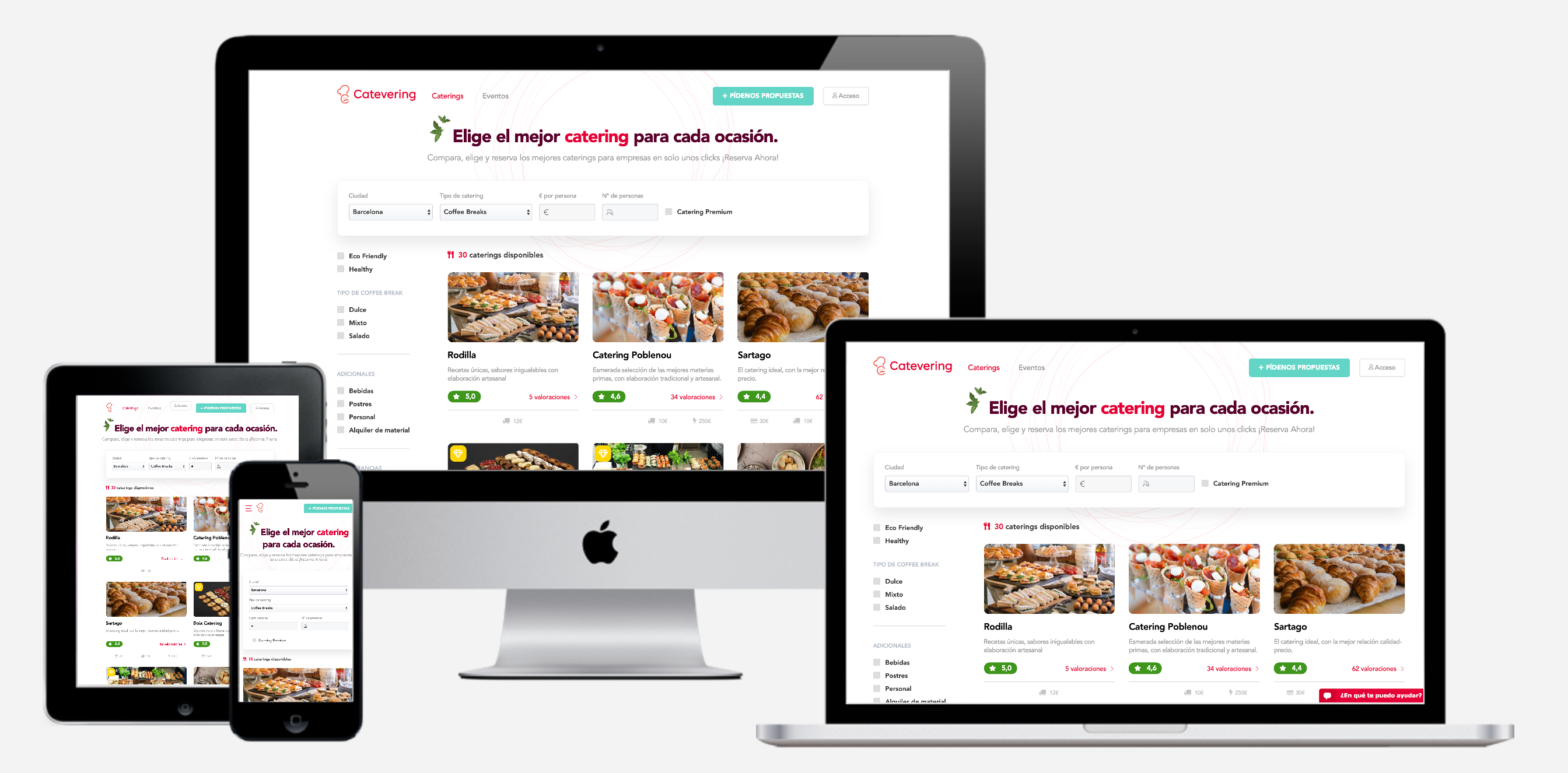 Catevering Catevering es una plataforma especializada para que las empresas puedan comparar, personalizar y reservar online, servicios de catering para sus reuniones y eventos de trabajo de una forma fácil y rápida.