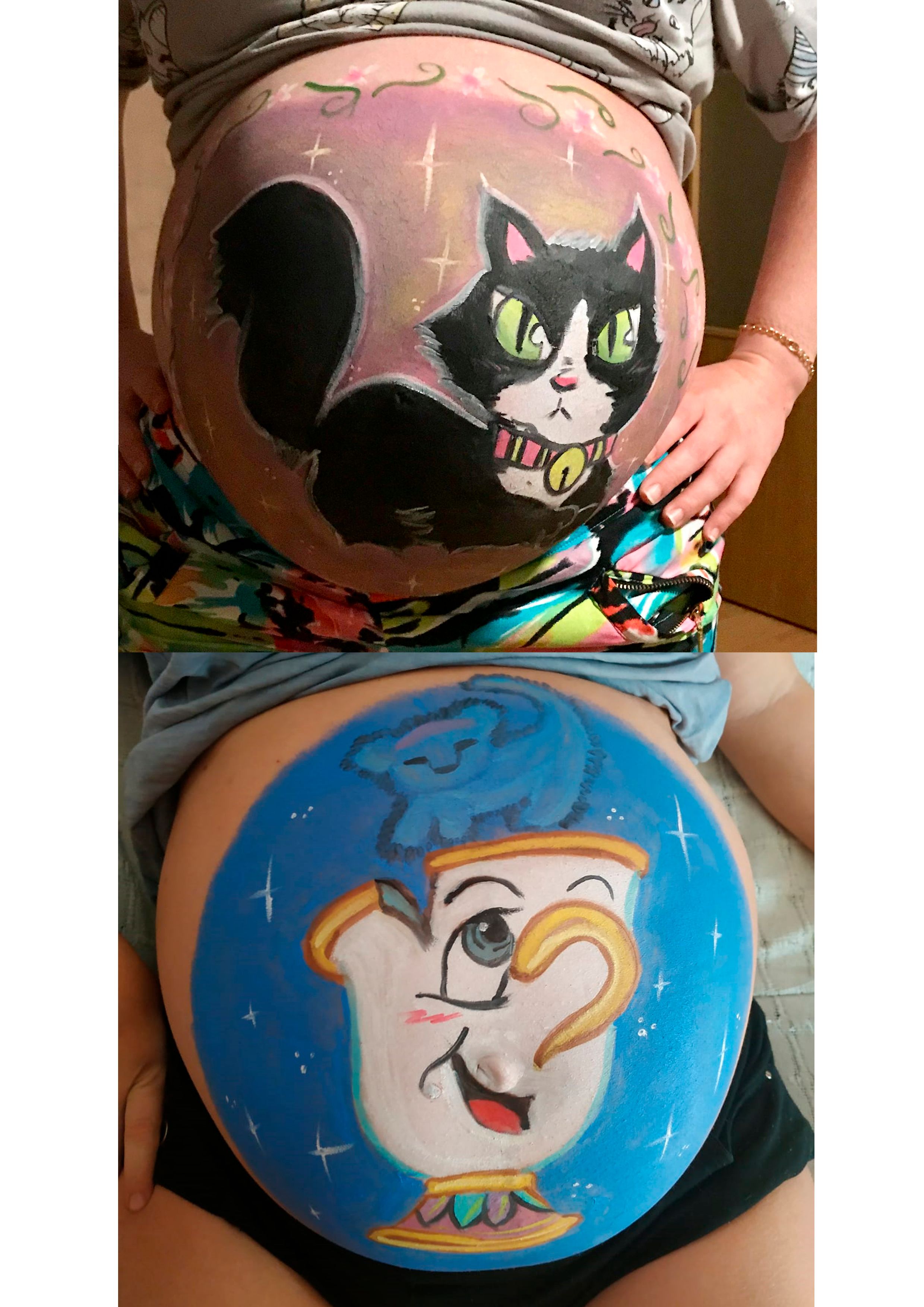 Bellypaint con personajes realizado con pintura al agua Snazaroo, esponja y pincel