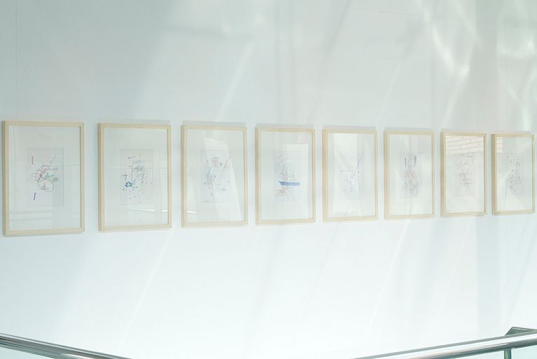 Las palabras se enhebran con ritmos quebrados, sin orden lineal, dejando al descubierto espacios vulnerables, vacíos, en los poemas y anotaciones de Cristina Savage Ramírez. El tiempo lento de la escritura permite sedimentar aquello que el tiempo amenaza. Un proceso que Alejandro activa en la serie de dibujos hechos de palabras, de gestos y de colores frescos y espontáneos, de gozosa proliferación, ricos en no saber. Muy cerca, el cuaderno de Cristina a resguardo del tiempo.
