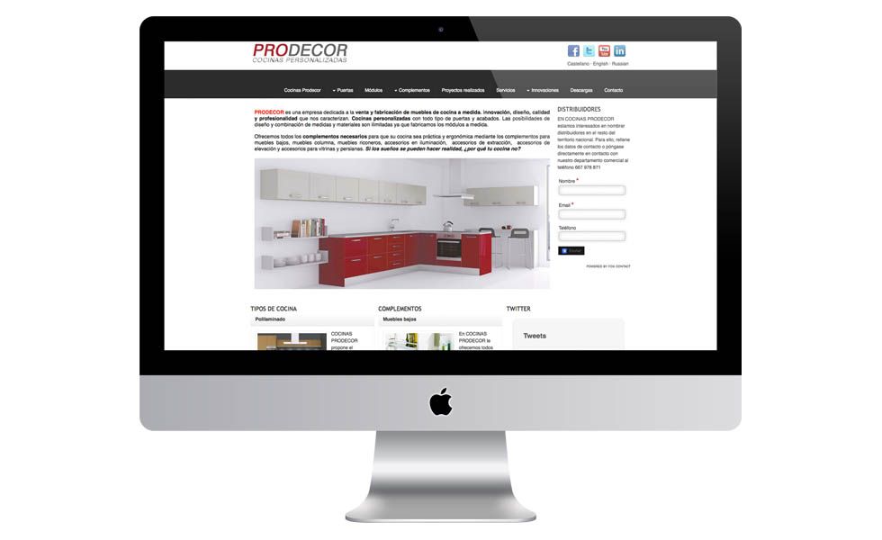 Diseño de página web para Cocinas Prodecor, empresa de diseño y fabricación de cocinas.