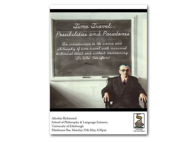 Created for the Edinburgh Science club once again as a promotional leaflet to promote a lecture on time travel