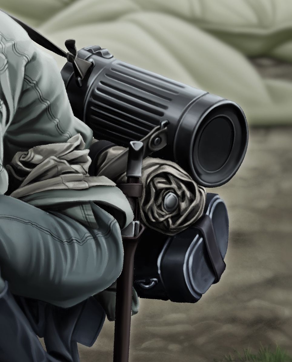 This new illustration I show is about the continuation of a personal project about characters from World War II. This character is in a more crouched posture, as if inspecting the terrain. I have also done a study of different views and the material that comes with it, so that later I will be encouraged by the ZBrush.