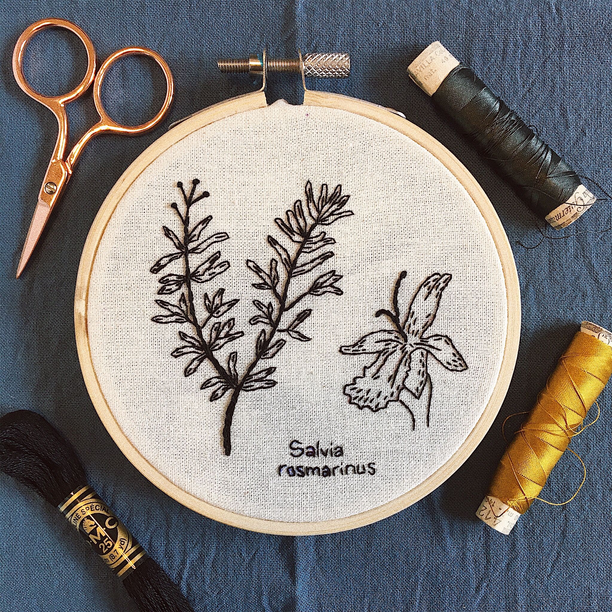 Ilustraciones botánicas bordadas a mano - Estilo grafitoIlustraciones botánicas bordadas a mano en punto pincel, inspiradas en las antiguas láminas botánicas. Ginkgo bilobaTilia platyphyllosCitrus aurantiumLavandula officinalis (Lavanda). Bordado en negro estilo grafito.Salvia rosmarinus (Romero). Bordado en negro estilo grafito.