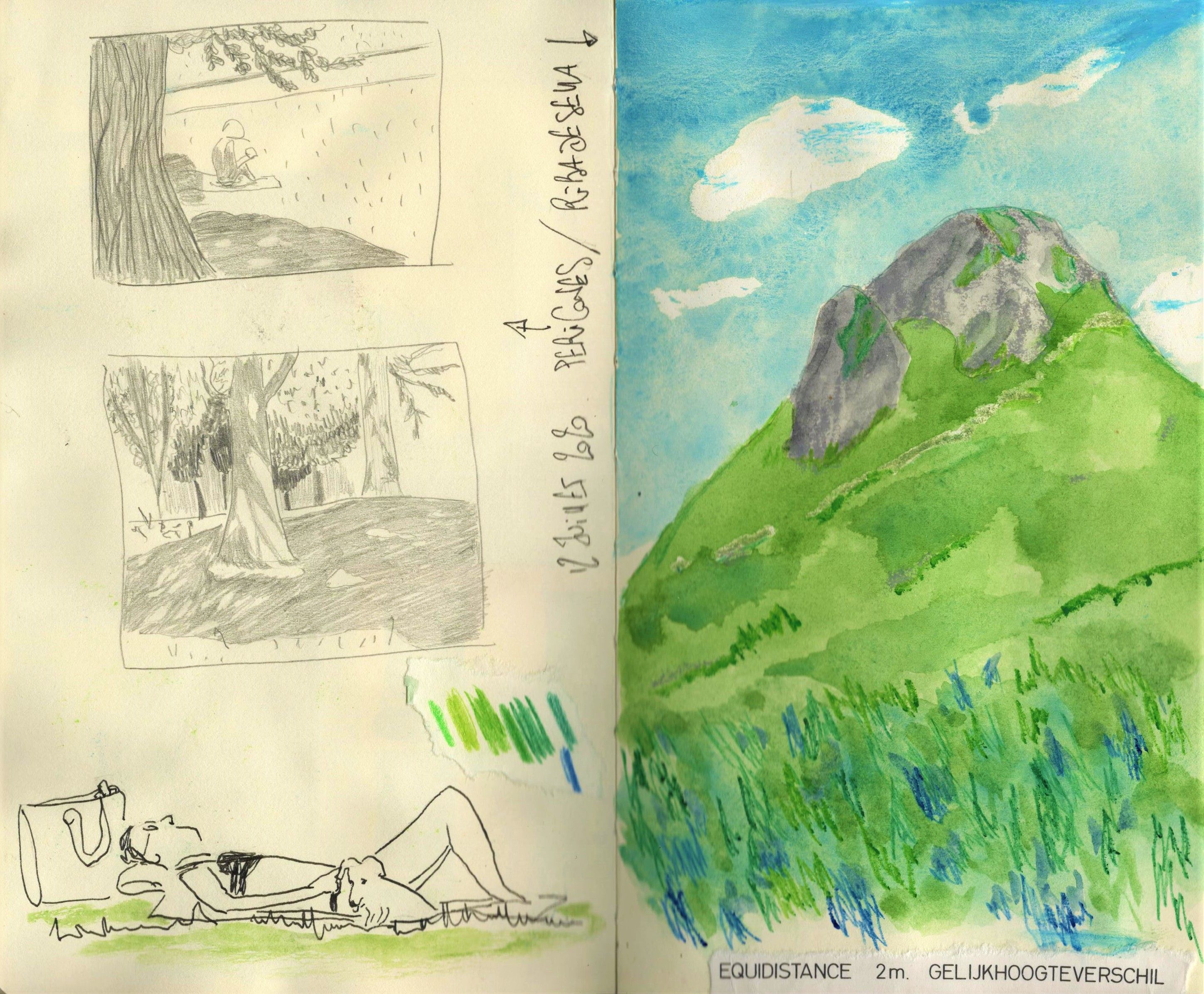 Hasta ahora solía dibujar en un cuaderno de formato A5 en el cual aprovechaba las dos páginas para hacer un dibujo único. Pero, al probar otros formatos durante el curso, me dí cuenta de que mi favorito es más pequeño.