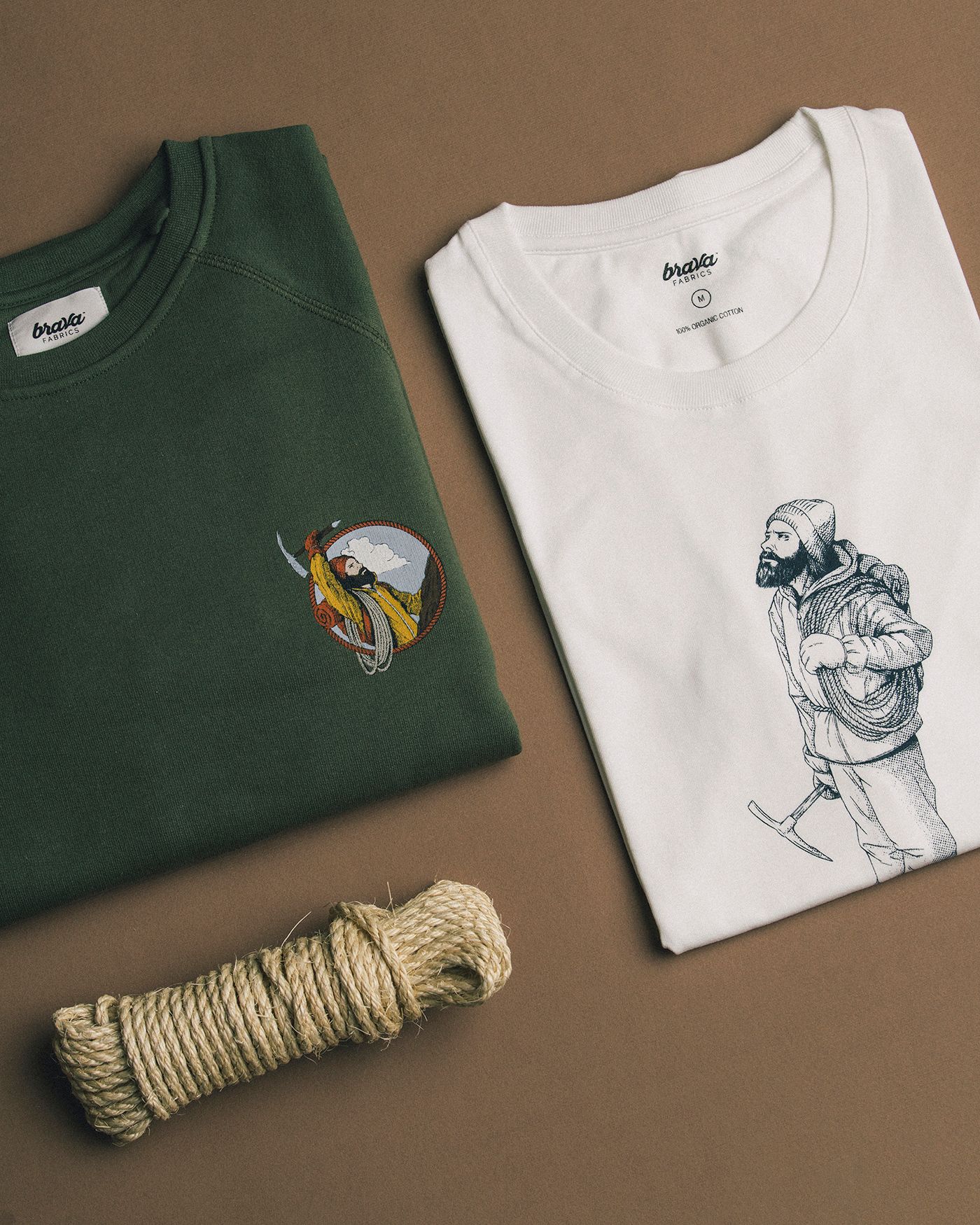 ‘The Hiker’ para la colección de otoño 2020 de Brava Fabrics. Dos diseños de camiseta y sudadera que homenajea a los grandes escaladores de las últimas décadas, que nos han ido mostrando los mejores paisajes.