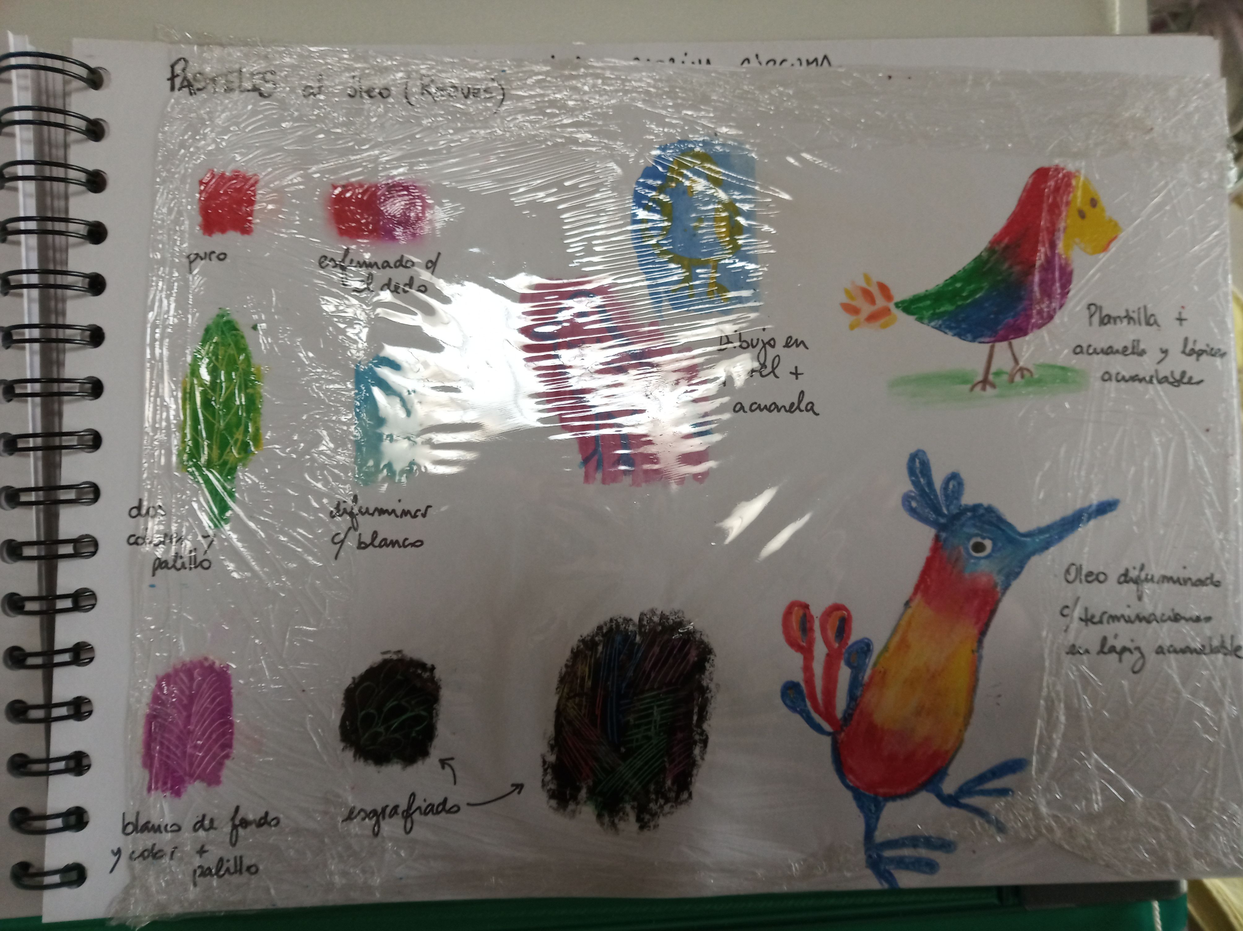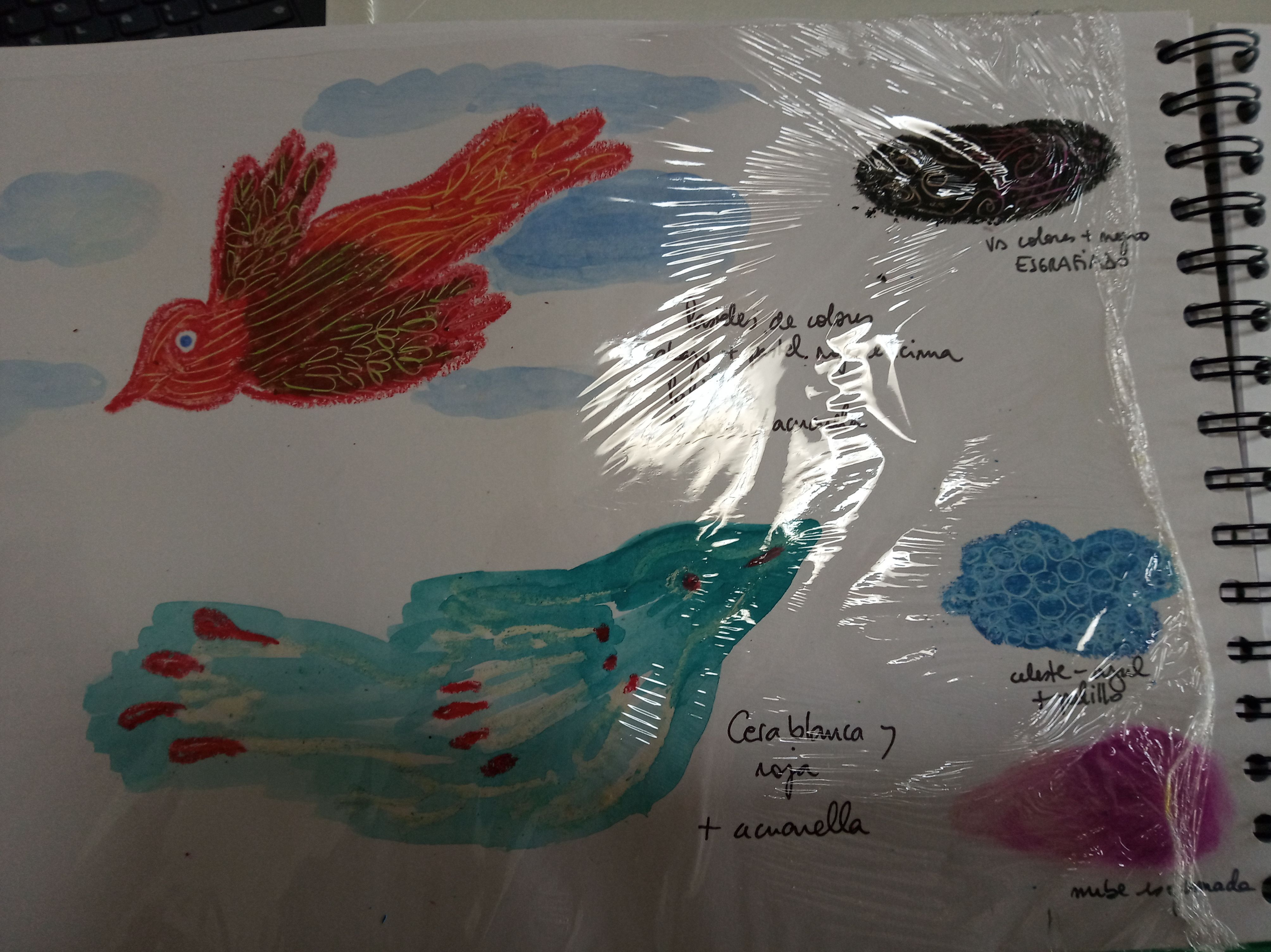 @mcmorilla Me encanta cómo has protegido tu cuaderno para evitar la mancha de la cera! claro pero a veces es inevitable por la técnica, quizá puedes aplicarle alguna laca o fijador para que se quede más fijo.
