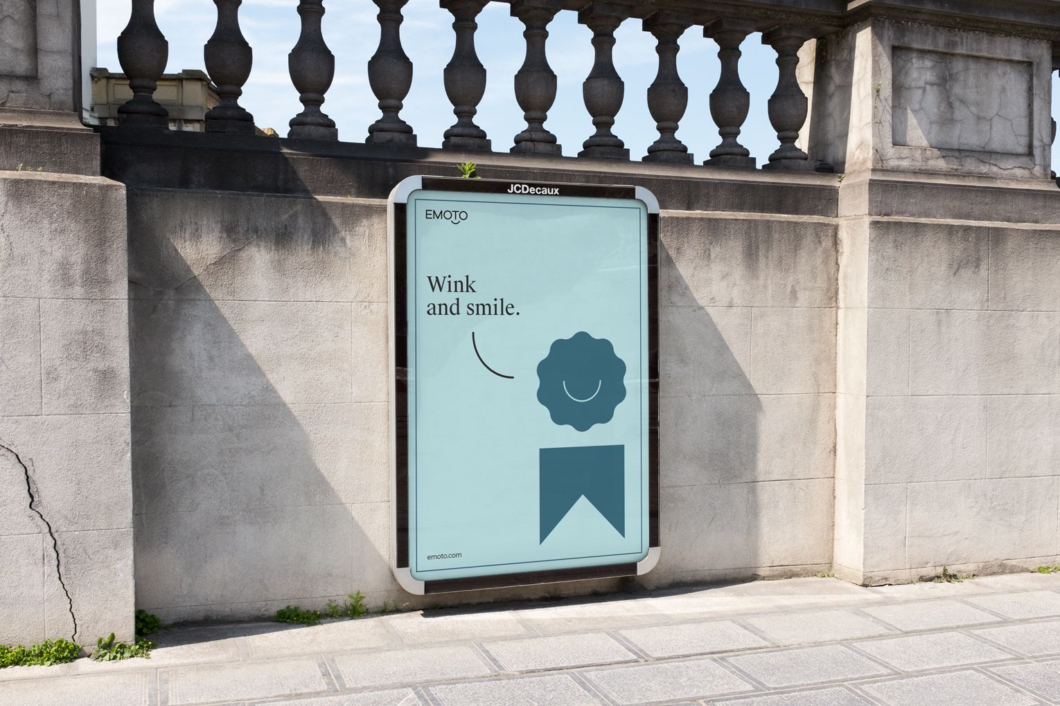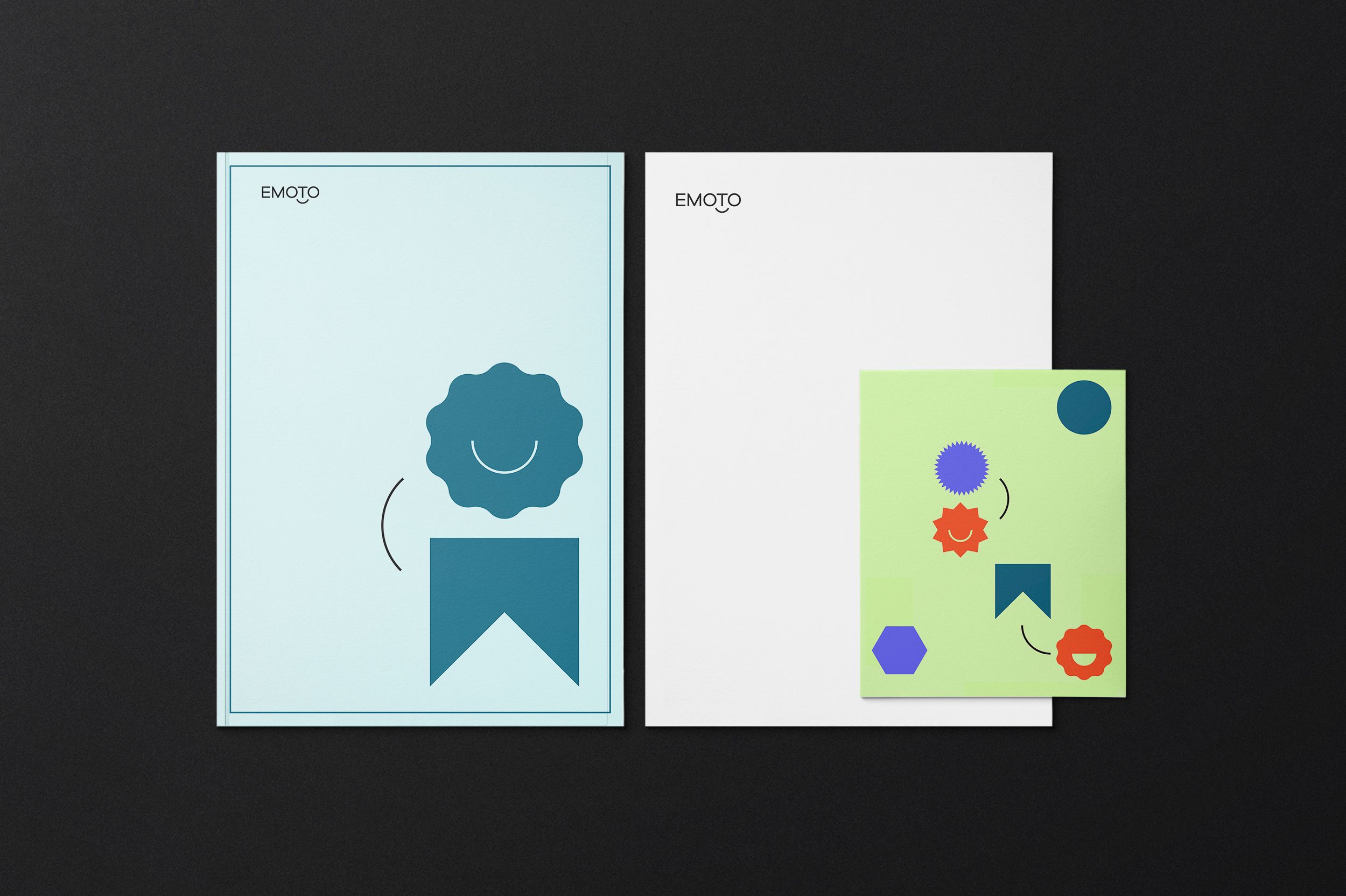Para construir el logo nos centramos en las dos "o" que contiene Emoto. Se convierten en representaciones de personas, conectadas entre sí de forma sencilla; esa línea que une las dos partes crean una sonrisa en el logo.