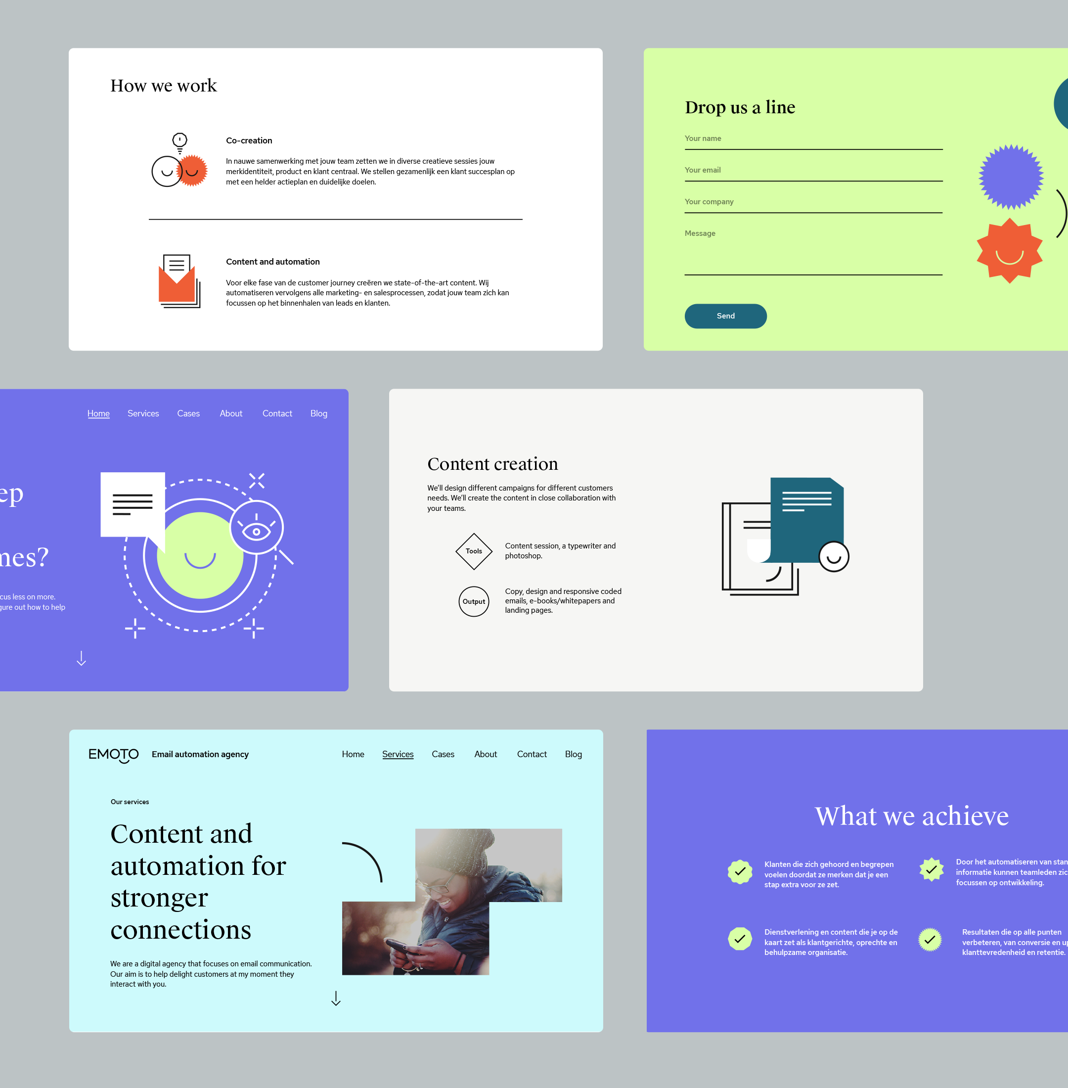 Emoto es una nueva agencia digital holandesa especializada en la creación de contenidos y campañas de automatización de marketing. Quieren reflejar su lado más emocional, ser la chispa que aporte frescura y motivación a los departamentos de marketing y a sus clientes. Para ellos: "lo esencial es estar conectados: la conexión entre las personas, los mensajes a las personas y las emociones que se crean".