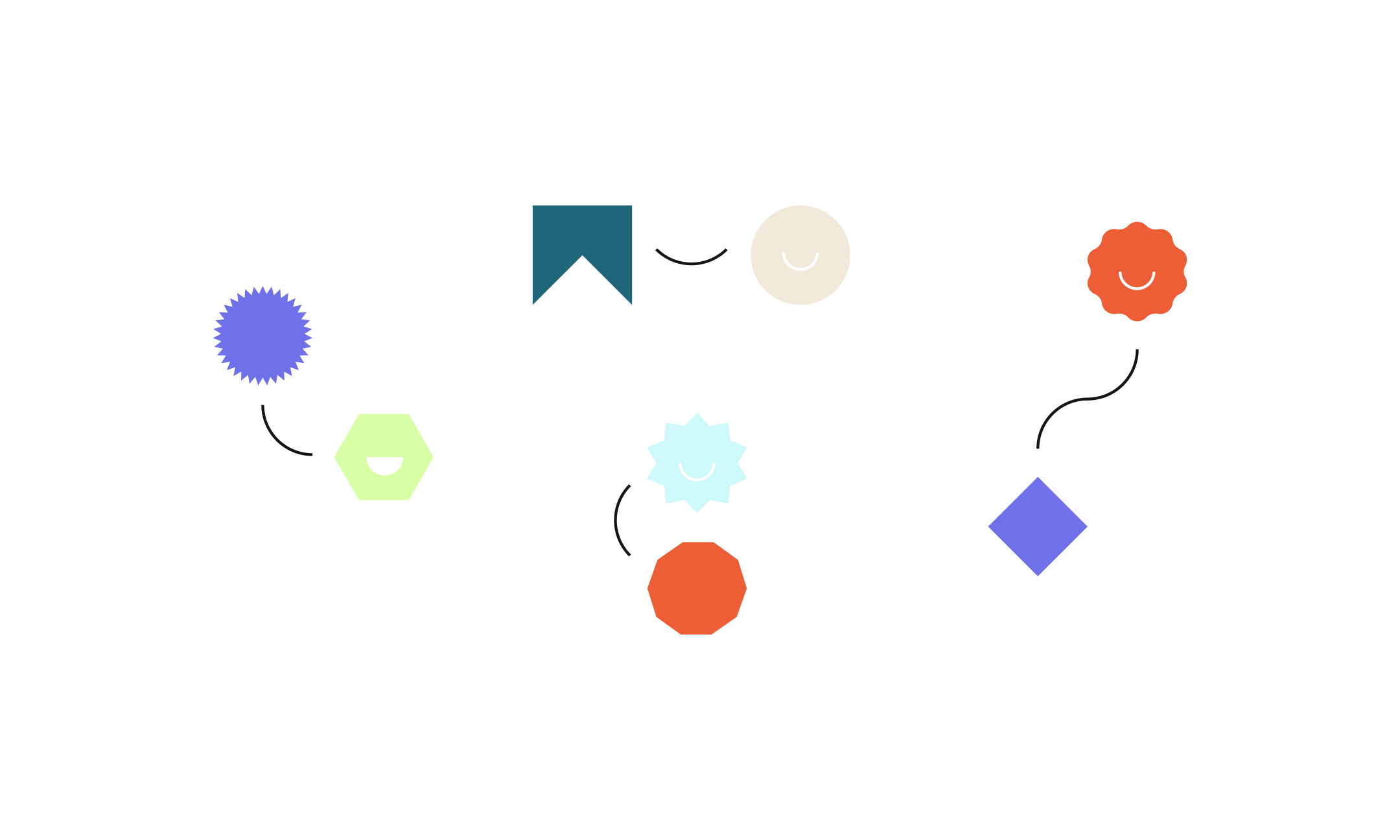 El sistema visual evoluciona para crear formas únicas traídas del logo. Creando una conexión entre las formas y el resto de elementos en las piezas. Incluso las caras sonrientes se forman para representar a las personas con las que conecta.