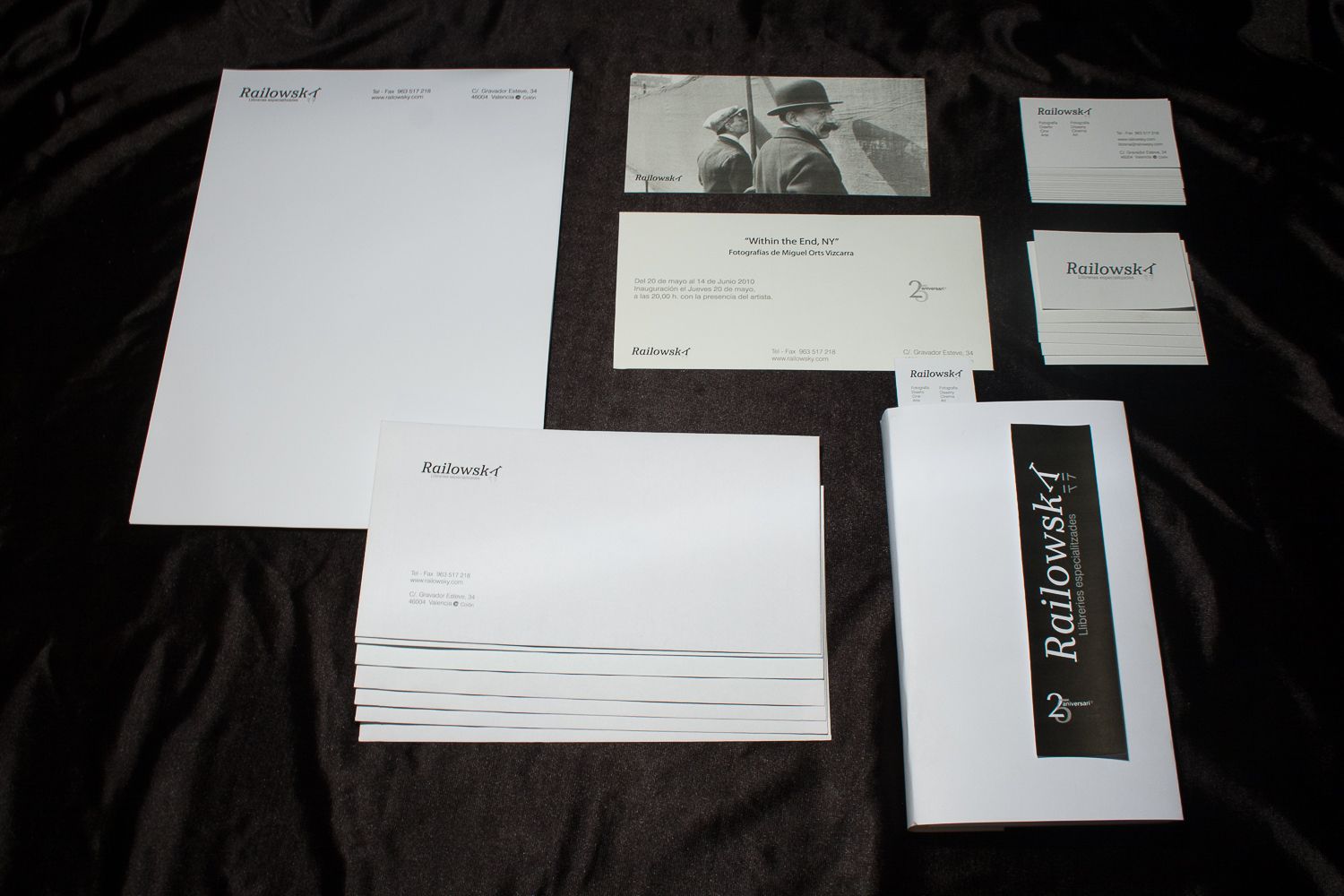 Rediseño para la identidad visual de la papelería valenciana especializada en fotografía, cine y diseño Railowsky. Se moderniza el logotipo y se adapta a los nuevos tiempos sin perder la esencia clásica que requería el cliente, se realiza un juego tipográfico con la “Y” simulando al hombrecillo que salta el charco de la foto de henri cartier bresson, que da nombre a la tienda.