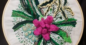 Bordir Tulle dengan Bunga dan Tanaman Alami
