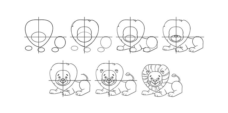 Per disegnarlo, si può iniziare come i precedenti, facendo uno schizzo di base della sagoma del corpo e aggiungendo gradualmente le caratteristiche di questo animale, come la criniera, gli occhi, il naso e la bocca. Per riflettere al meglio la forza del leone, i piccoli artisti possono utilizzare colori vivaci e intensi.