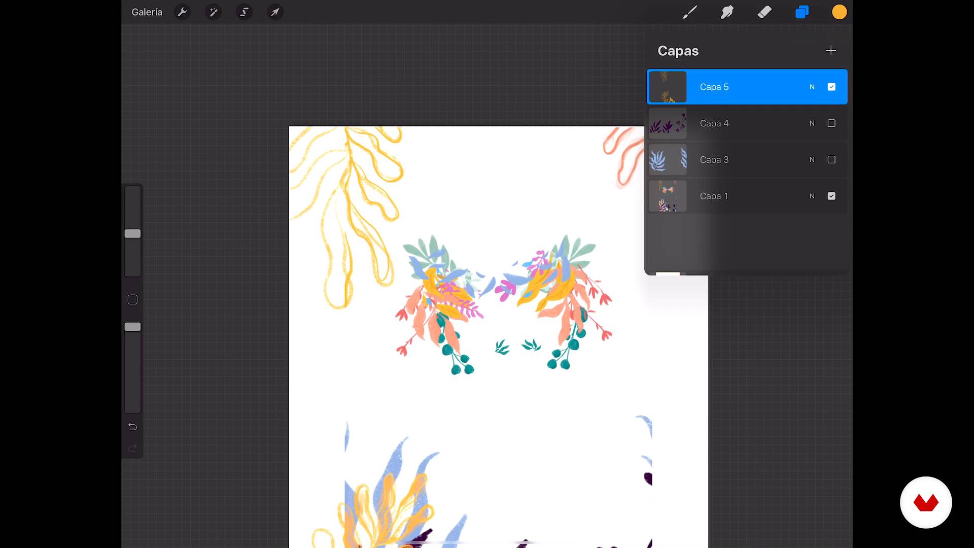 “Quello che faremo ora è esportare tutto questo e ci sono varie opzioni per chi usa Procreate. Una è condividerlo direttamente in PSD e ci manterrà i livelli. e un'altra è selezionare tutti i livelli che abbiamo. prenderli. trascinarli. aspettare che si apra la galleria e metterli qui. ok? E vedrete che si sono create tutte separatamente. Lì le selezioniamo tutte e possiamo condividerle direttamente in PNG. tutti i file separatamente. trasferendoli al computer. Rimangono da completare gli elementi dello sfondo e del mare. un passo essenziale per il progetto. Lo sfondo e la cornice rispondera...”