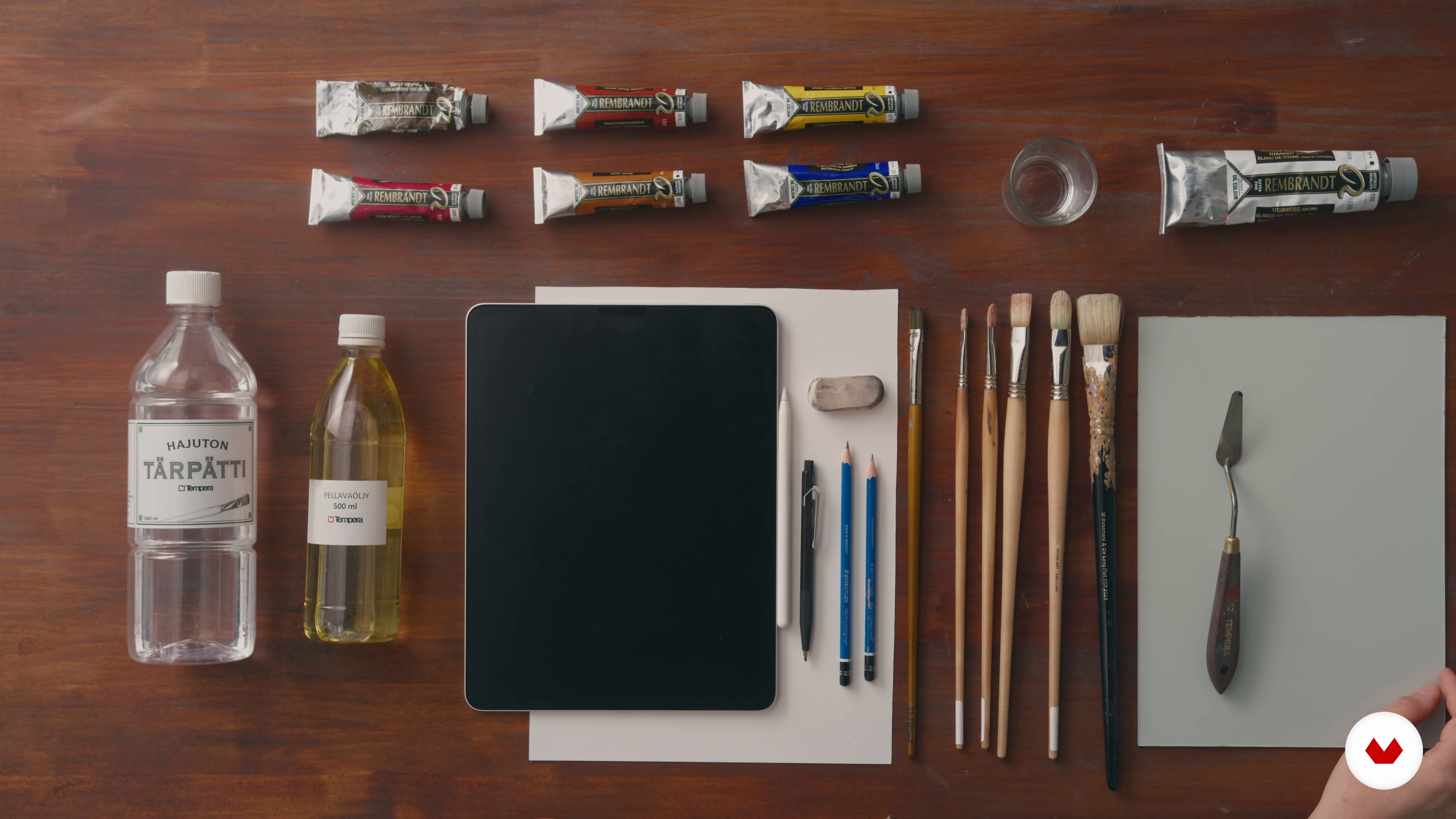 “In questa lezione, presenterò tutti i materiali necessari al corso per prepararti al processo di pittura. Esaminerò le loro proprietà e il motivo per cui mi piace usarli.”