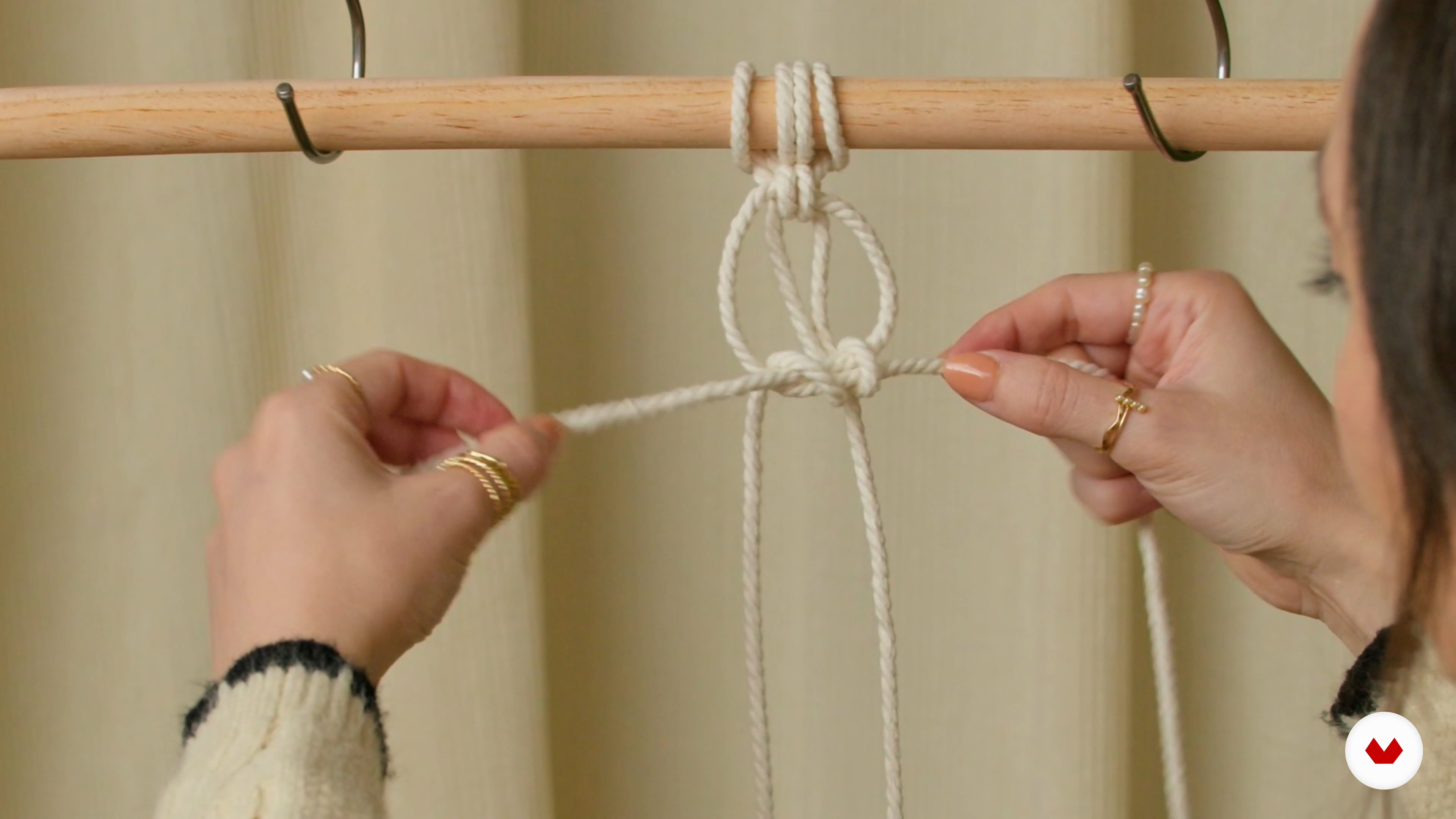 “In questa lezione, ti guiderò attraverso diversi nuovi nodi e tecniche di macramè. Spiegherò anche i materiali di cui avrai bisogno per dare vita a questi nodi in un design più avanzato per i plant hanger.”
