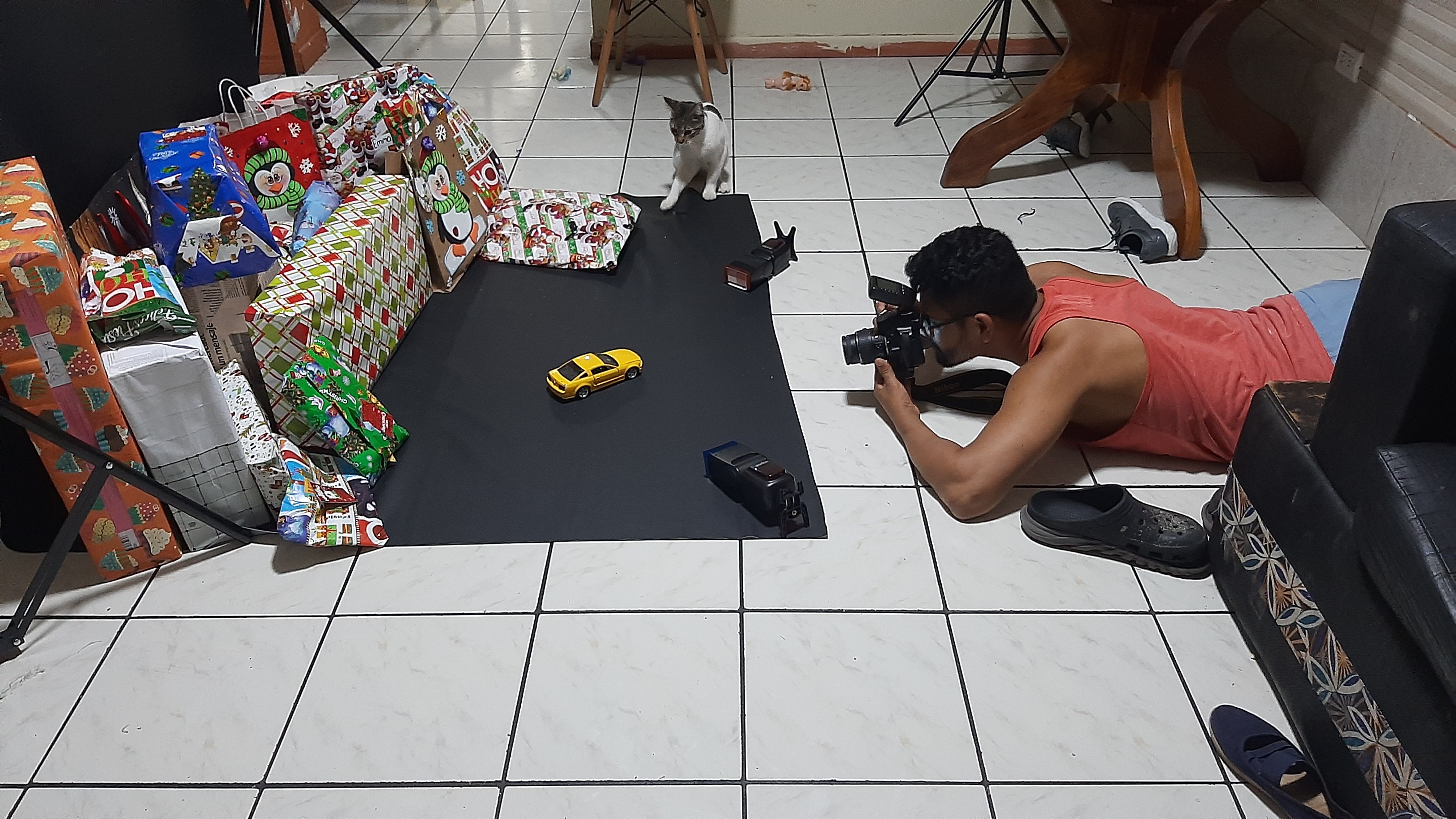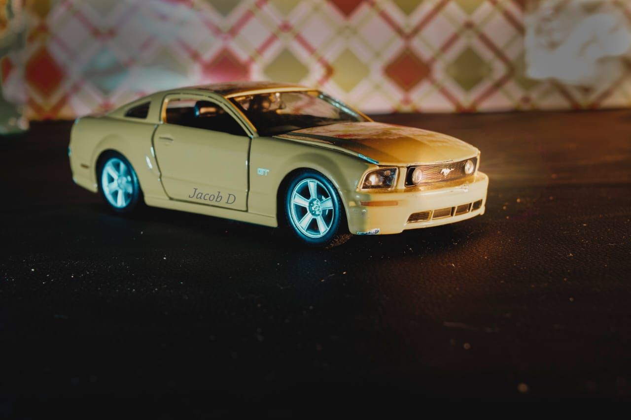 Tambien les comparto una foto de un carrito Mustang a escala, con el que estaba jugando con el TT600 y un V860 de godox con dos geles de color, uno azul y uno naranja. Les agrego por parte la imagen del carrito editada.