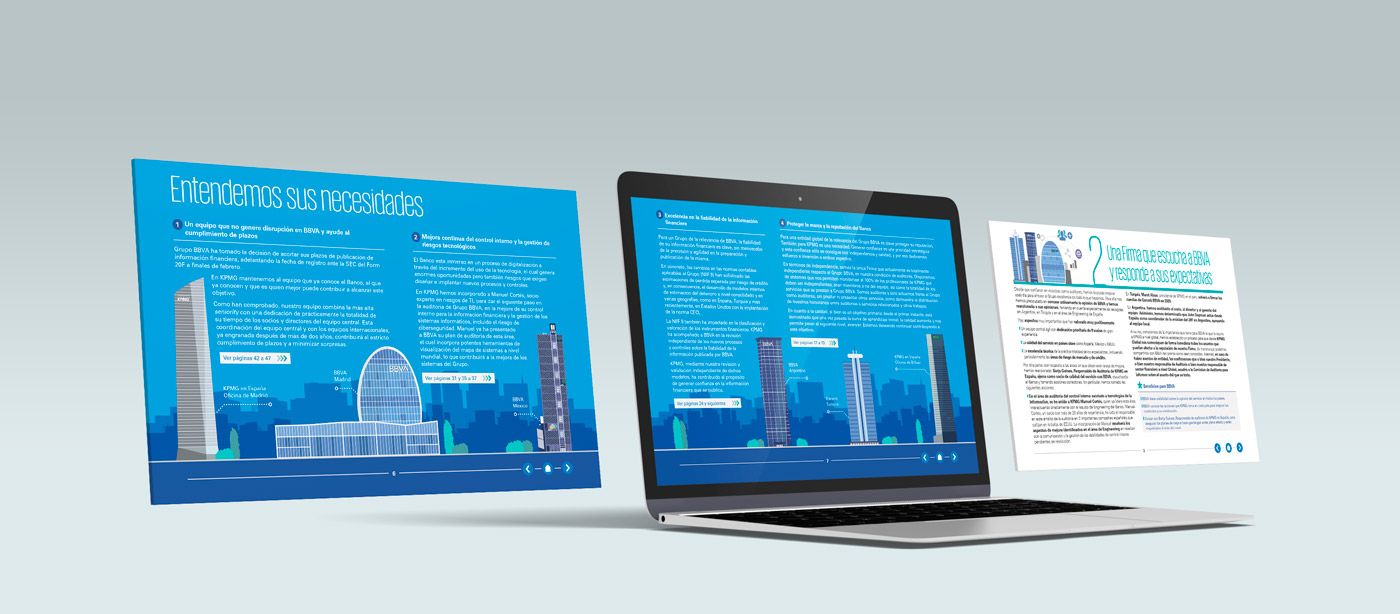 Elaboración de ilustraciones de las sedes centrales de BBVA en España, México, Argentina y Turquía para su utilización en la propuesta de servicios de auditoría de KPMG.