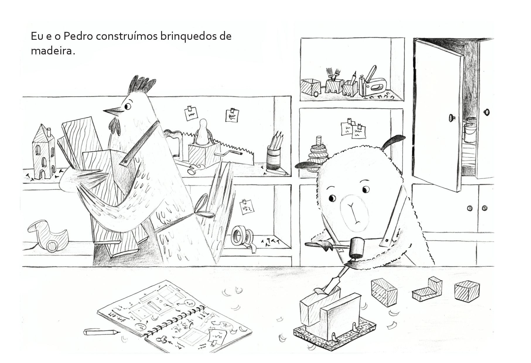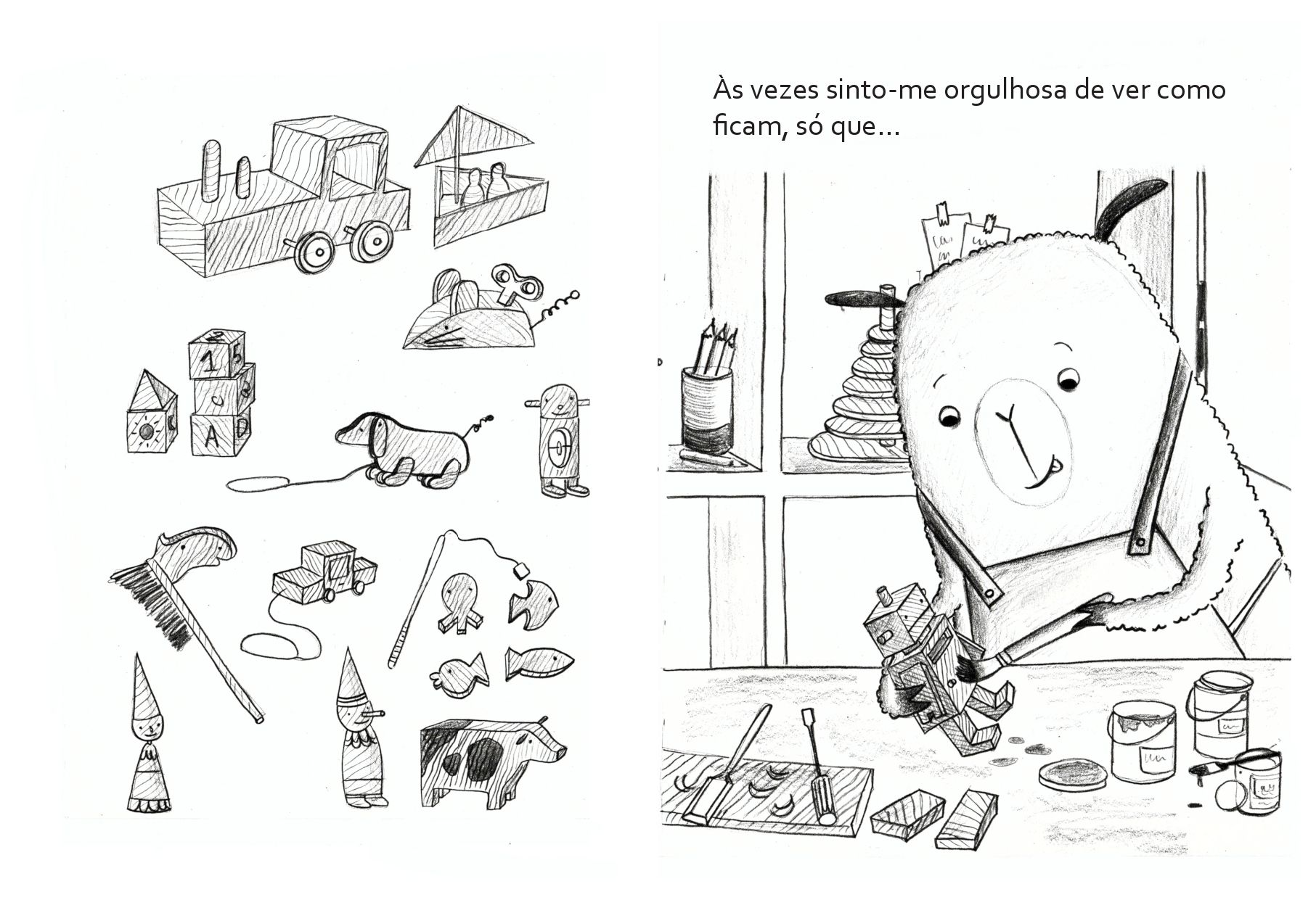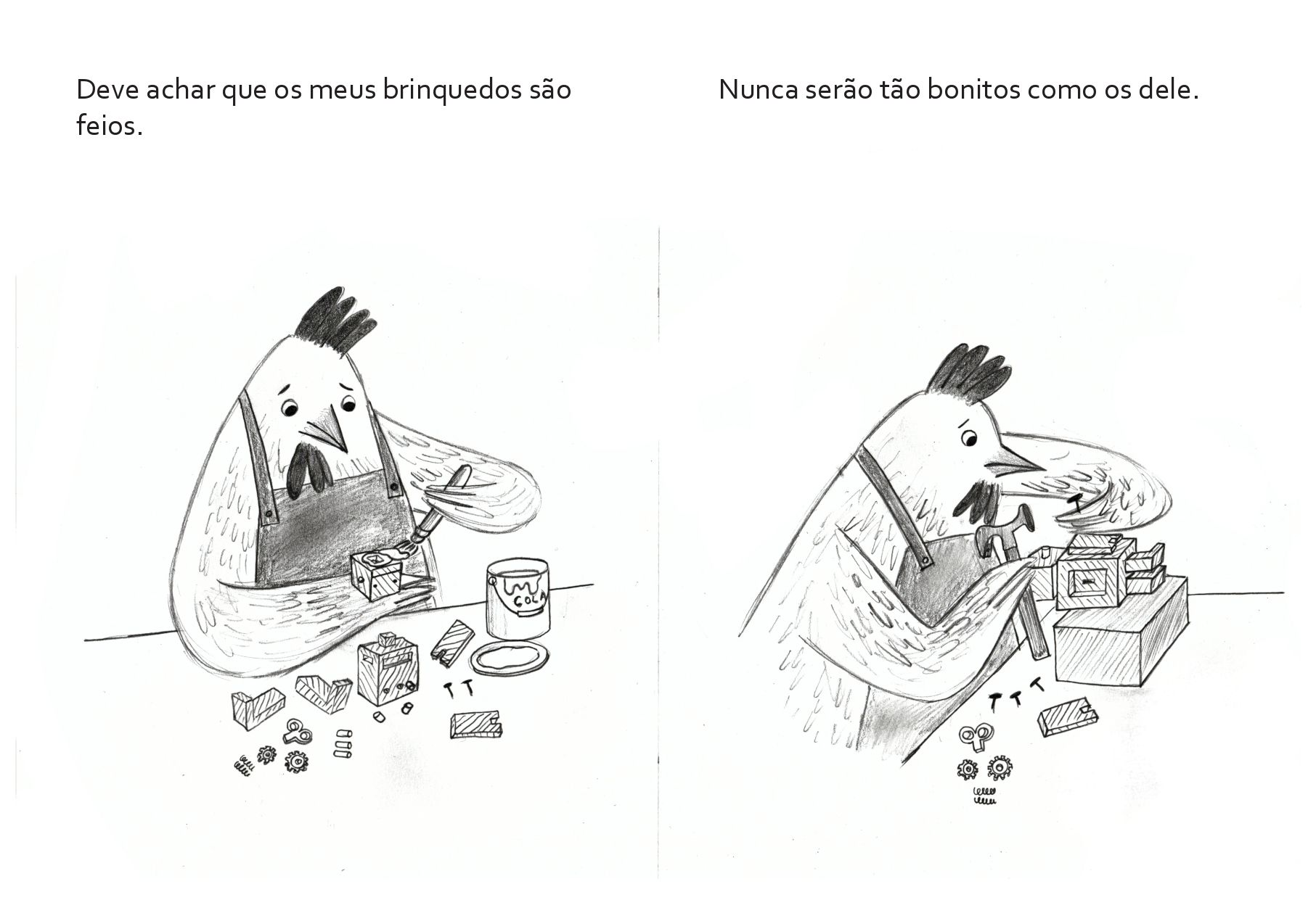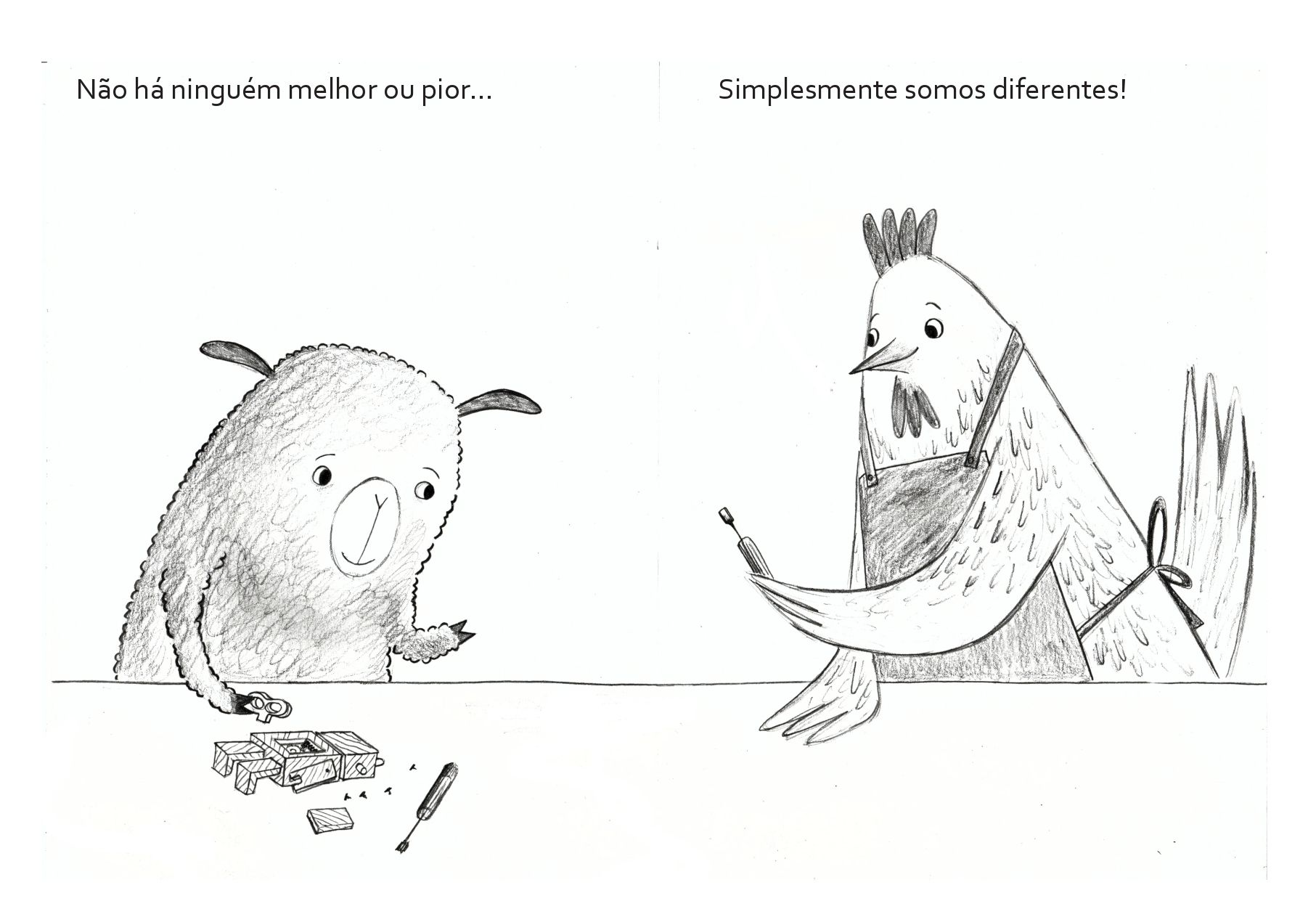 Aqui esta mi proyecto final titulado "Melhor do que eu ". (mejor que yo). Al final, realizé el texto en portugues porque lo voy a enviar a un concurso de album ilustrado en Portugal.
