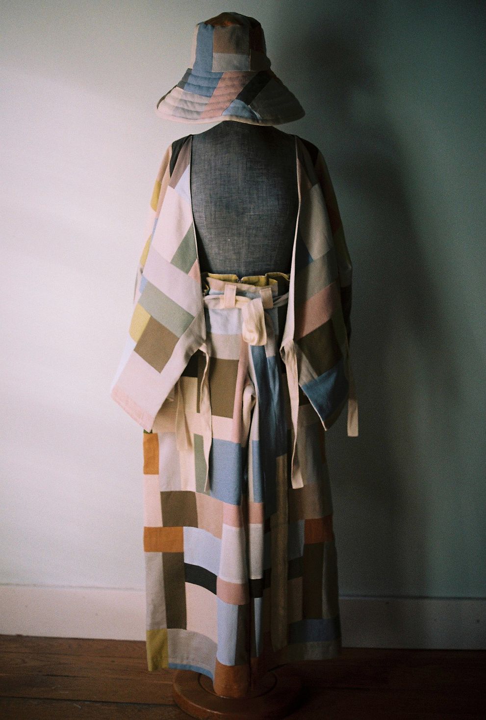 Ayaloik was created collaboration with Sara Ayala for the Creative Textile Marathon at La Casa Encendida in November 2020. The project consisted of recycling and giving disused garments a second chance. To do this, we were searching for garments made of natural fabrics (cotton and linen). The idea was to recreate a set using traditional techniques such as sashiko, pogaji or patchwork and create a design that was genderless and oversize, with oriental lines.