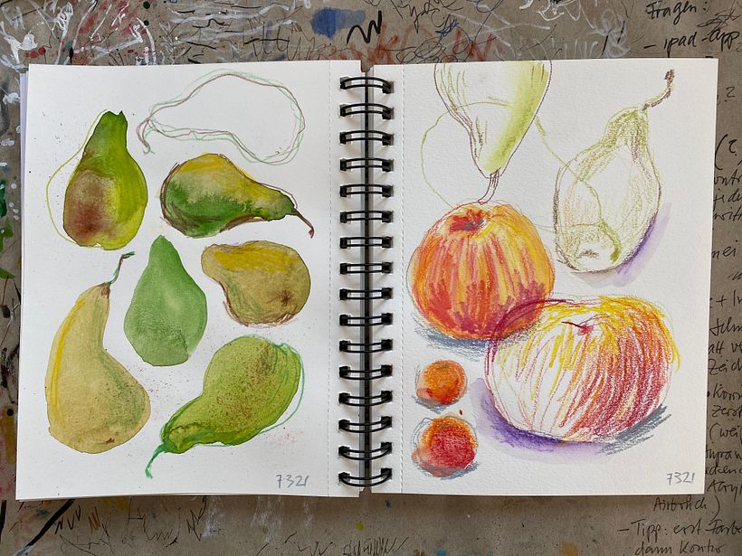 In the end, I experimented a lot with a pear and tried many techniques. And what Laura predicted actually happened: suddenly (by chance) new paths opened up that were not foreseeable at the beginning: