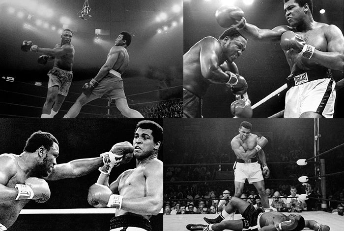 He utilizado el blanco y negro, evocando el entorno de las grandes peleas televisadas de los años dorados de Muhammad Ali.